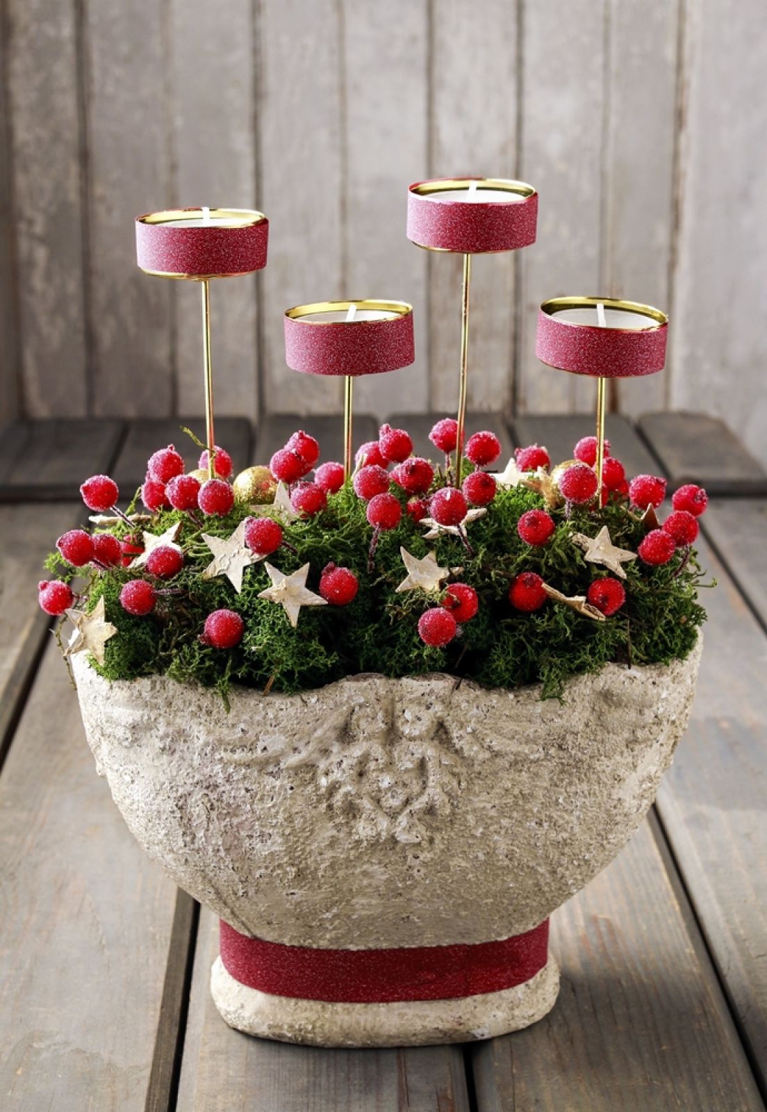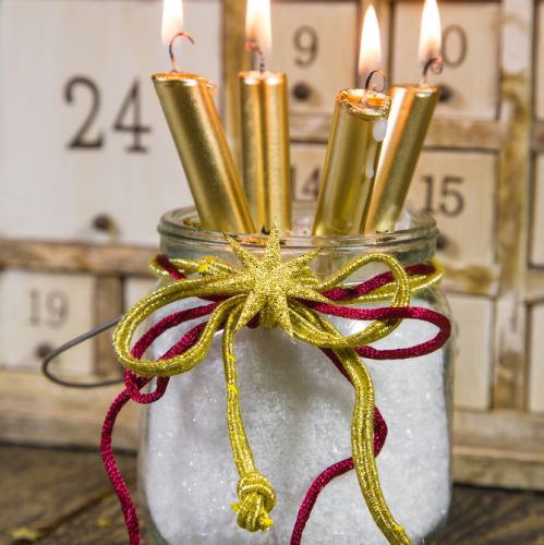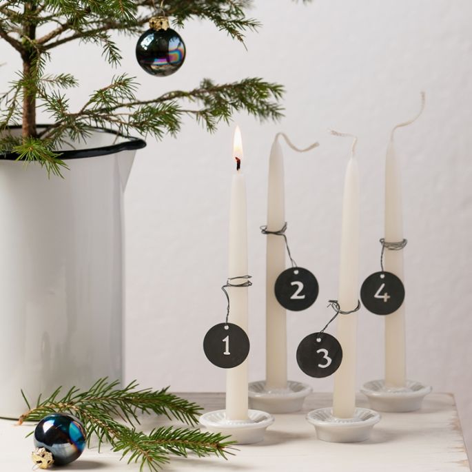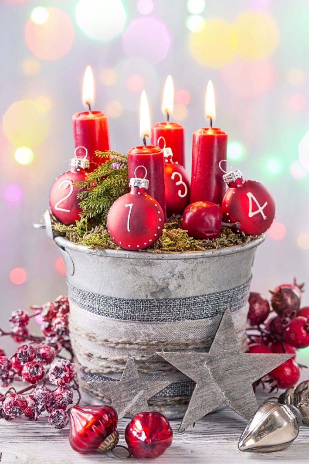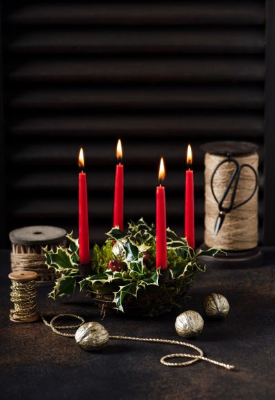 Świece adwentowe będą piękną ozdobą bożonarodzeniowego stołu, gdy postawimy je na ładnej podstawce, udekorujemy błyszczącymi bombkami, zielonymi gałązkami ostrokrzewu albo kolorowymi gwiazdami betlejemskimi. Świece możemy przewiązać eleganckimi wstążkami, na których zawiesimy kartoniki z cyframi oznaczającymi kolejność tygodni Adwentu.