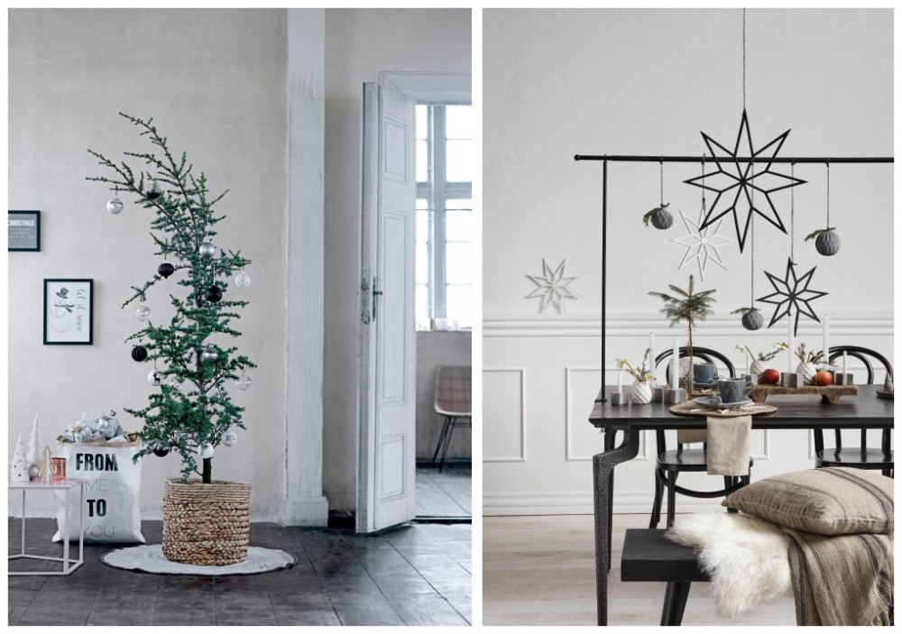 Styl skandynawski charakteryzuje się oszczędnością i ta zasada dotyczy także świąt Bożego Narodzenia. Dlatego choinkę dekoruje nieduża ilość bombek, są w maksymalnie trzech kolorach lub proste w formie, np. zrobione z drucików. Wazony zdobią gałązki pomalowane na biało, obok zatrzymują się białe jelonki i renifery. Jeśli wieniec, to jakby zapleciony w lesie z choinki i szyszek, duże ozdoby jak np. papierowe gwiazdy najlepiej by były zrobione z szarego papieru.