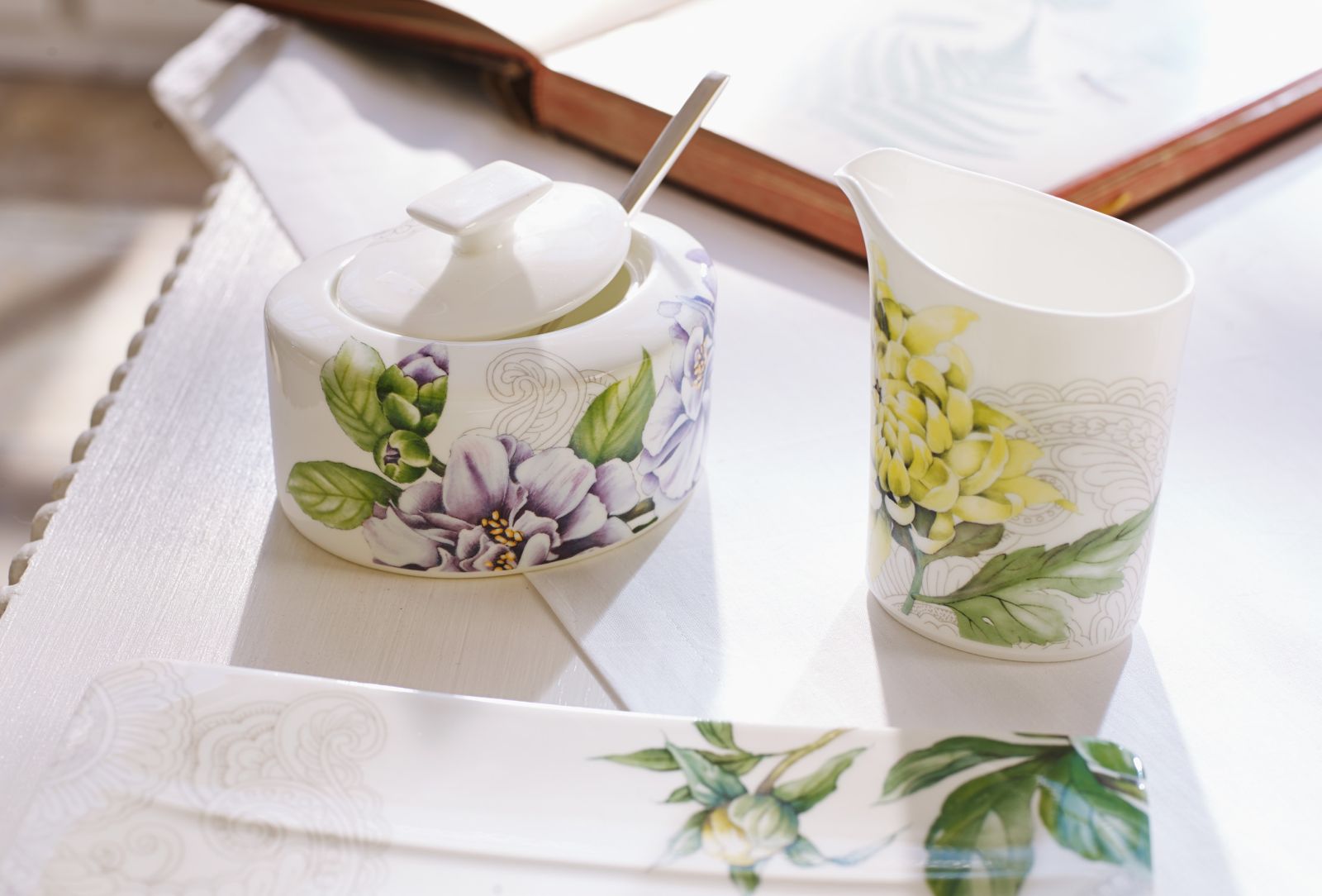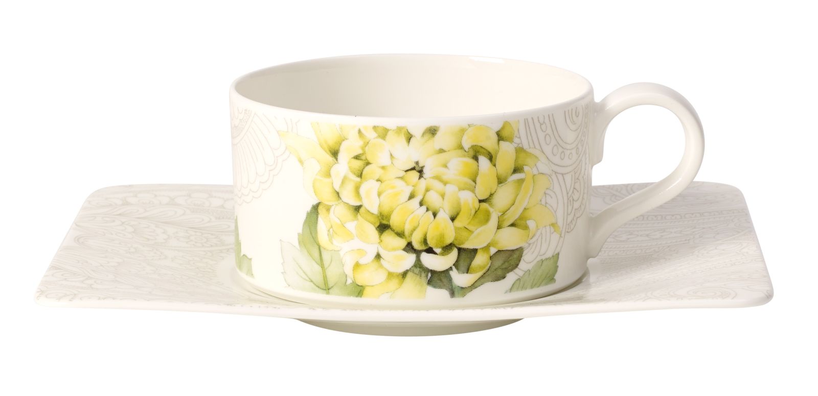 Rajski ogród w Quinsai W przepięknych ogrodach miasta Quinsai nic nie było przypadkowe – każdy rosnący tam kwiat i roślina miały głębsze znaczenie. Dlatego nową kolekcję Quinsai Garden od Villeroy & Boch zdobią wytworne peonie oznaczające bogactwo i szlachetność, delikatne kamelie symbolizujące hojność, kolorowe chryzantemy wskazujące na odwagę, wytrwałość i długie życie oraz wspaniałe magnolie wyrażające szacunek do władców i pięknych kobiet. Wielobarwne floralne dekory zostały skontrastowane z monochromatycznym, łagodnym wzorem paisley – a całość ręcznie naniesiona na porcelanę. W skład linii wchodzą filiżanki ze spodkami, miski, talerze, imbryk, cukiernica i mlecznik. Na każdym elemencie znajduje się inna kompozycja – łącząc je ze sobą, stworzysz rajski ogród, wprost z najwspanialszego miasta Quinsai.