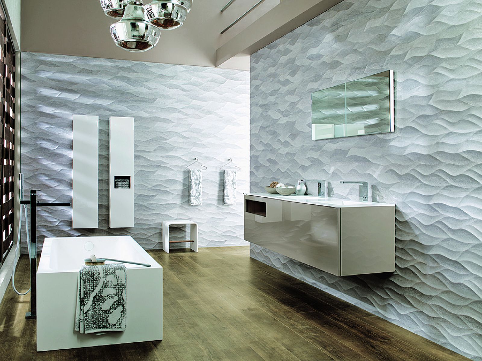 Jednym z czołowych producentów płytek 3D jest hiszpańska fabryka VENIS z Porcelanosa Grupo. Bogactwo form może przyprawić o zawrót głowy. Począwszy od kolekcji VENIS MADAGASCAR i dekoru ONA z przestrzennymi, dodatkowo podkolorowanymi dla uwypuklenia efektu 3D, falami, przez błyszczące płytki VENIS DIAMOND, VENIS HELSINKY czy VENIS GLOBE, aż po piękną, oksydującą kolekcję VENIS CUBICA, w której matowo-błyszcząca powierzchnia płytek w pewnym stopniu przypomina mieniącą się mozaikę.