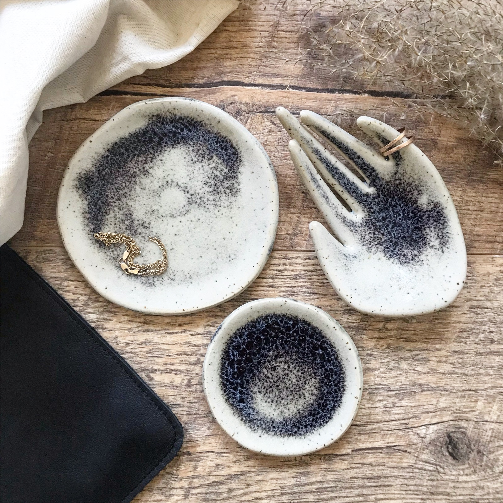 Znalezienie pierścionka nie będzie już problemem, bo założysz go na place glinianej łapki, ucho królika, poroże renifera lub położysz na błyszczącej tacce na biżuterię. Wchodząc do pokoju od razu je zauważysz. Ukochane drobiazgi pięknie zaprezentują się też na ceramicznych, ręcznie wykonanych podstawkach w kształcenie dłoni, muszli lub ostrygi od polskiej projektantki Moniki Krajewskiej z Maison Fragile.