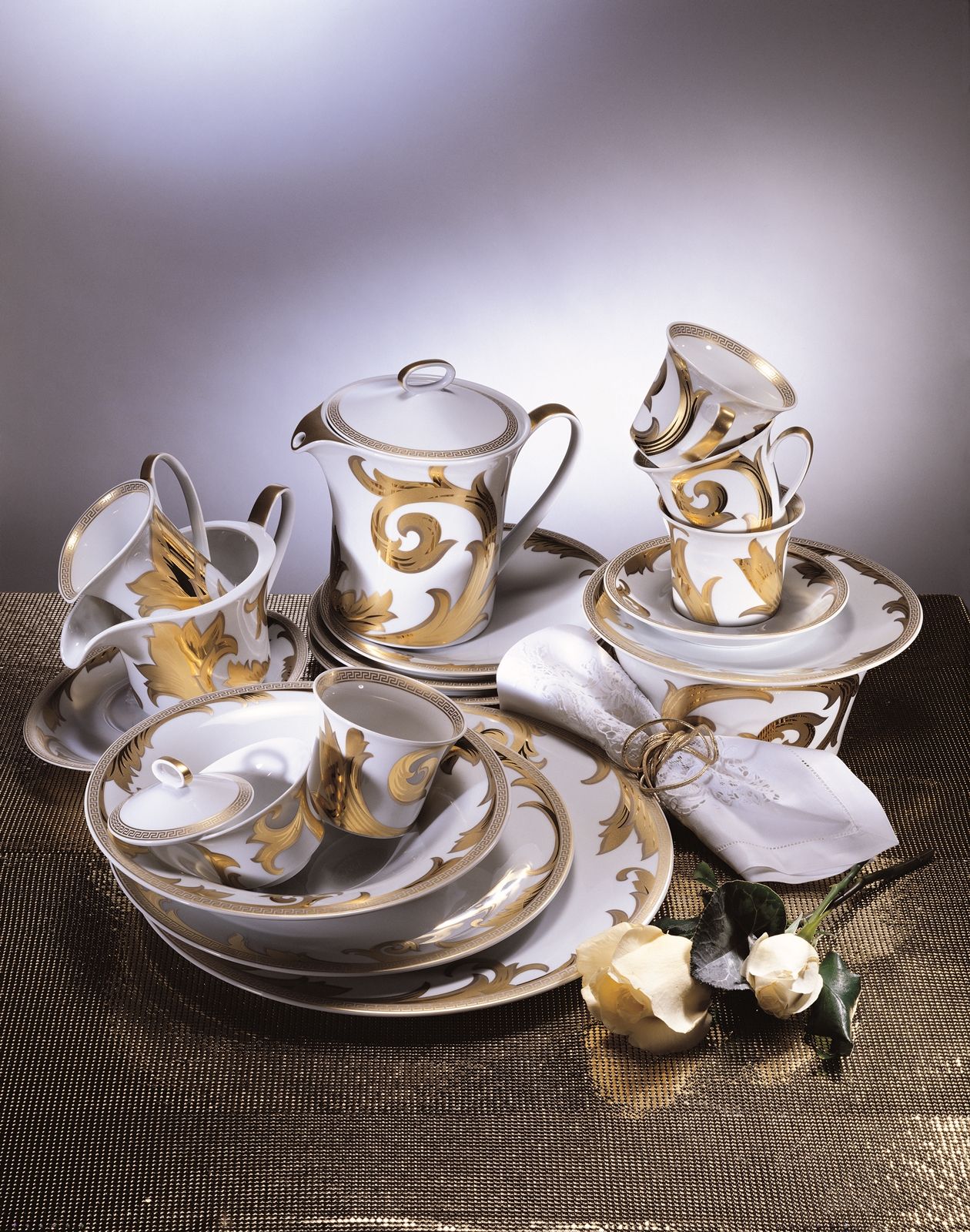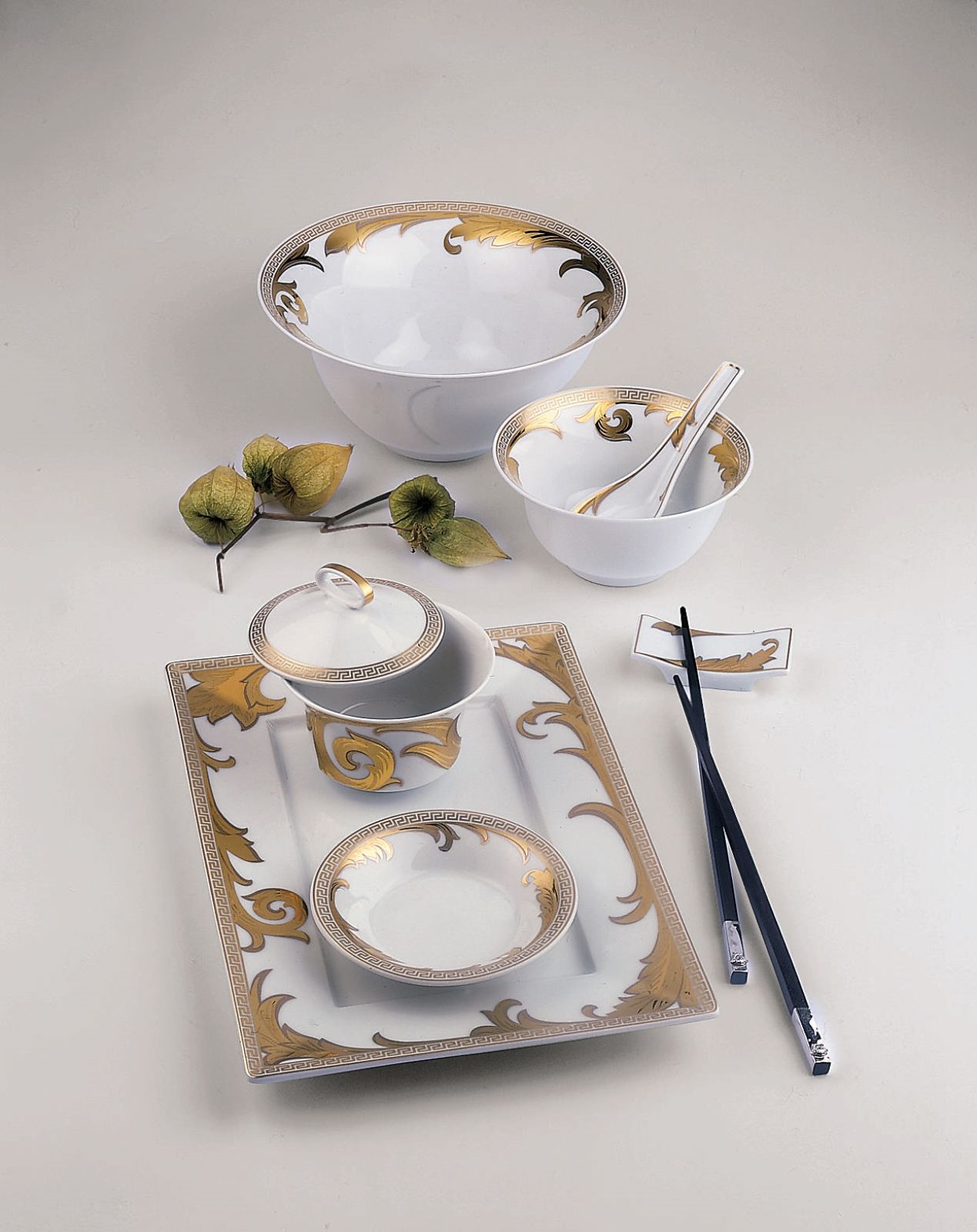 Wzór z tej tropikalnej sukni ikony zdobi jedną z kolekcji porcelany firmy Rosenthal, dla której Gianni stworzył legendarne już zastawy. Donatella regularnie bawi się, modyfikując stary wzór, dorzucając zaskakujące kolory, np. róż, domalowując kwiaty, wszystko po „versacemu” z „łamaniem reguł, mąceniem wody i wiosłowaniem pod prąd”, jak mawiał jej brat. Ale nie tylko odnawia barokowe klasyki rosenthalowskiej porcelany. Tworzy też autorskie kolekcje, mocno powiązane z modą.