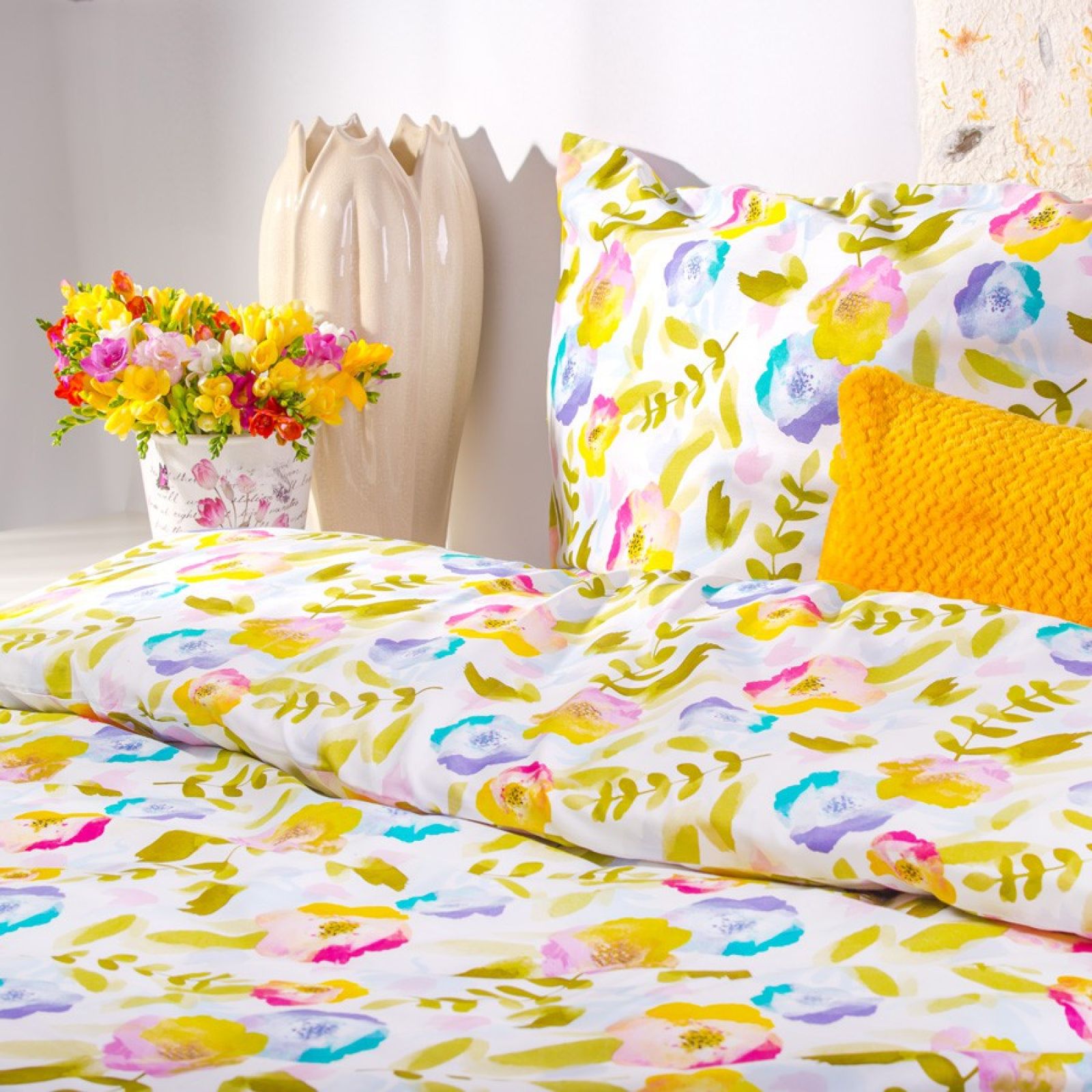 A wiosną ożywienia potrzebujemy chyba najbardziej. Dlatego zanim przyjdzie do ogrodów, parków i lasu, zaprośmy ją do naszych sypialni i salonów. Wiosenna pościel nie tylko sprawi, że sen będzie lekki i przyjemny, ale stworzy w domu ożywczy nastrój. Przewietrzmy więc kołdry i poduchy, by oblec je w kwitnące kwiaty, kiełkującą trawę, świergoczące ptaki. Niech rozjaśni przestrzeń świeżą zielenią, słonecznymi żółciami, delikatnymi owocowymi kolorami.