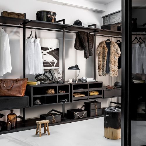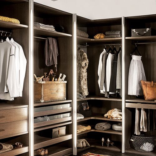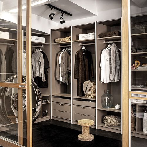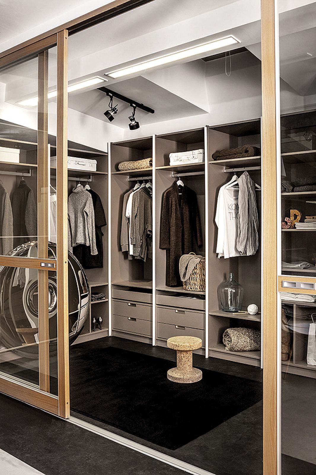 Garderoby – cztery modele: Cornice, Uno, Legno i Ecoline; za ten pierwszy firma dostała m.in. prestiżową nagrodę Red Dot – kompletnie wyposażone, podbiją serce niejednej pani domu. Mają m.in. obrotowe regały z naklejonym na plecach lustrem, przeszklone fronty szuflad, a środki wykończone alkantarą. Wszystko podświetlone i otwierane za jednym dotknięciem. No cóż, porządek ułatwia życie.