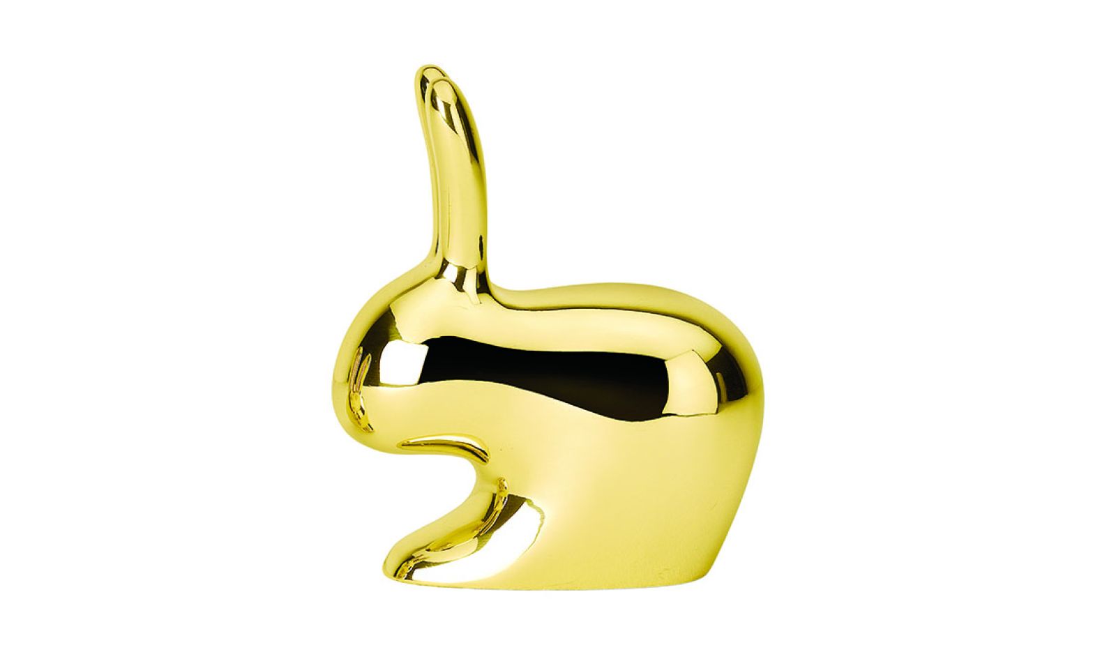 Zajączki wielkanocne lubią być pomocne. Przynoszą prezenty najmłodszym, a dla dorosłych ceniących design mogą stać się prezentem samym w sobie. Do szczególnie ciekawych projektów należą oszczędne w formie, a bogate w funkcjonalność prace Stefano Giovannoniego. Dla swojej marki QeeBoo projektant stworzył krzesło w kształcie zająca (długie uszy są tu oparciem), które po zmierzchu można zamienić w efektowną lampę. Miniaturka tego projektu w kolorze złotym, dystrybuowana przez włoską sieć Ghidini 1961, zdobi stoły jako pieprzyniczka i solniczka.