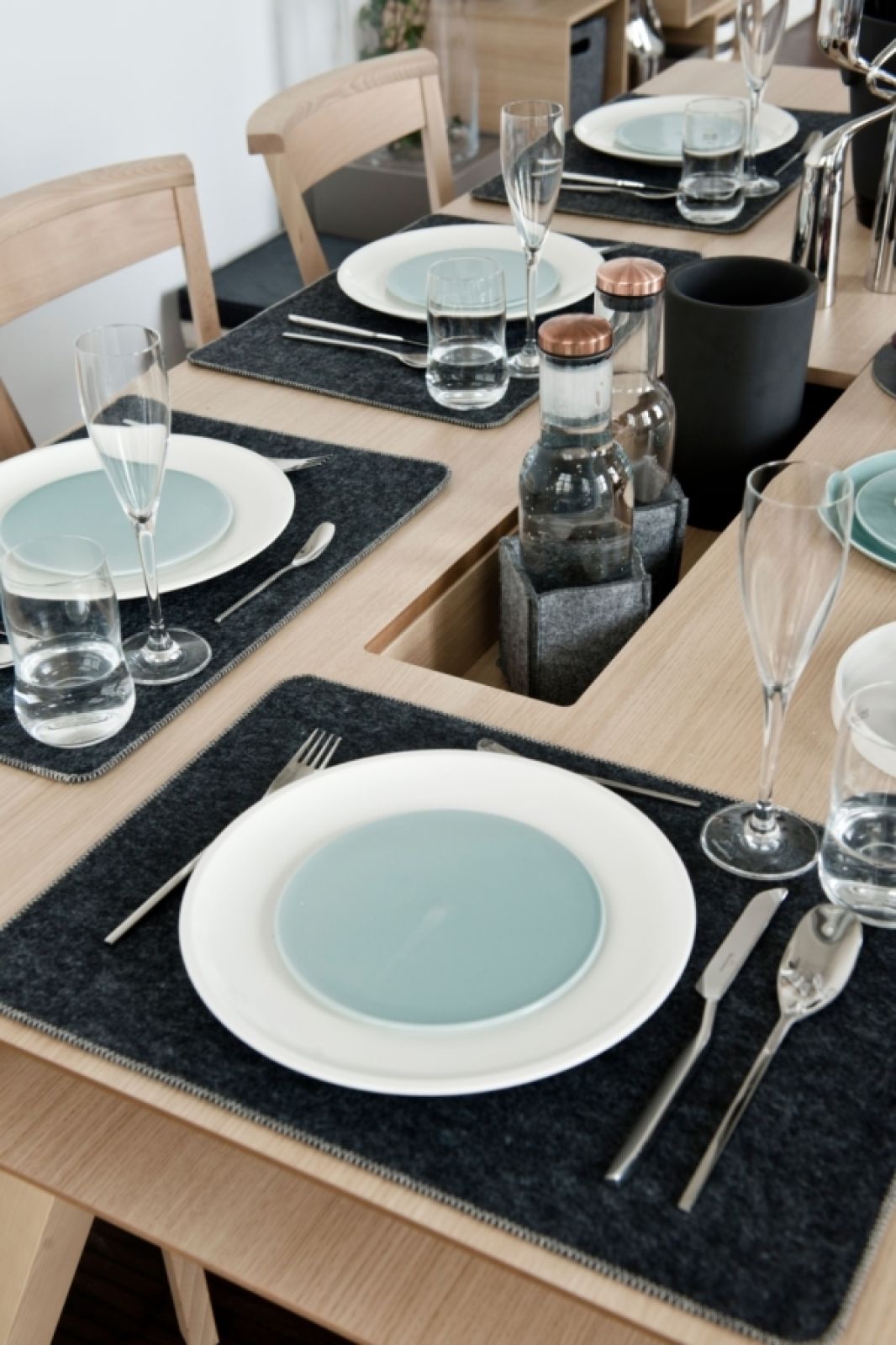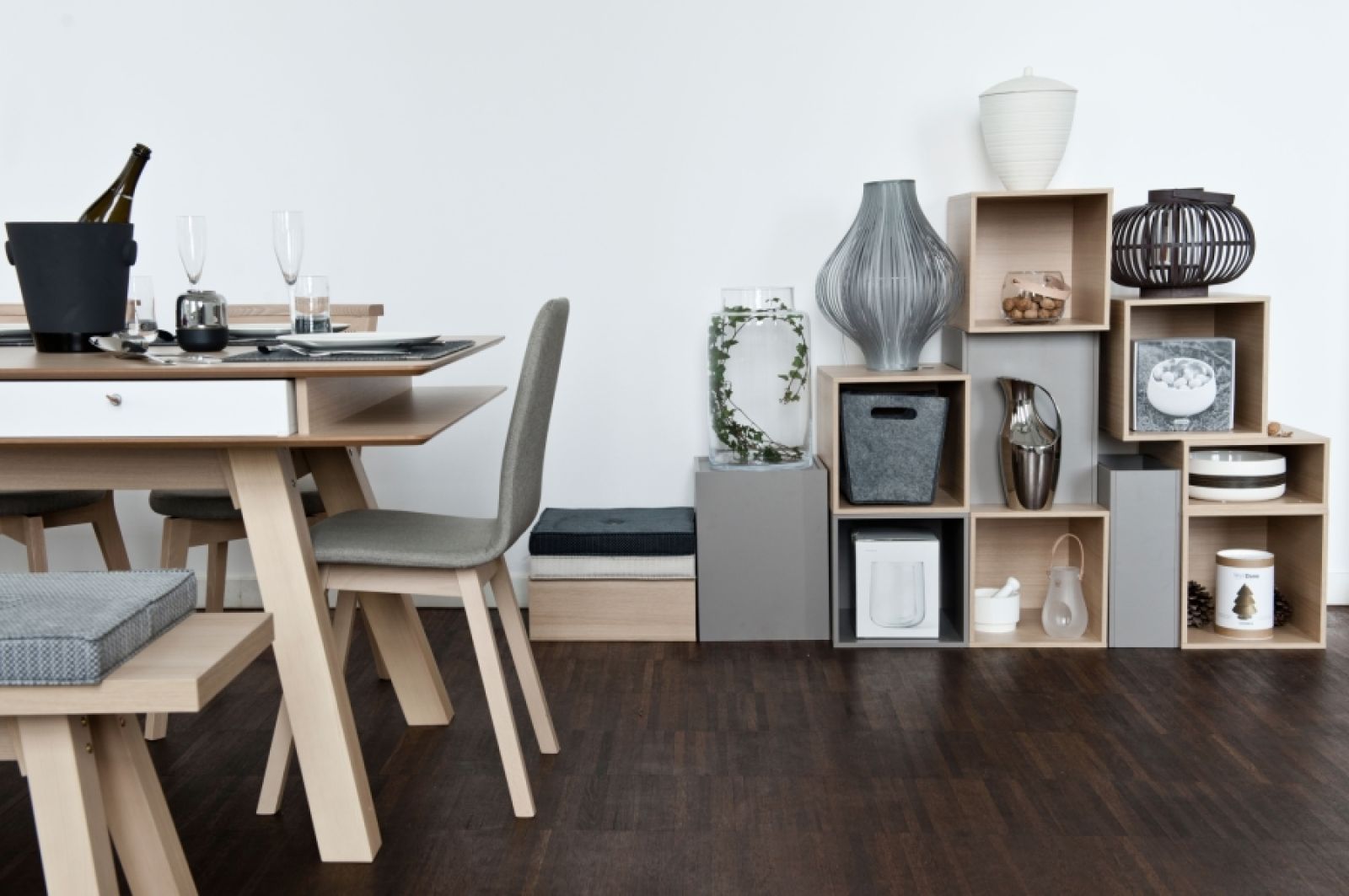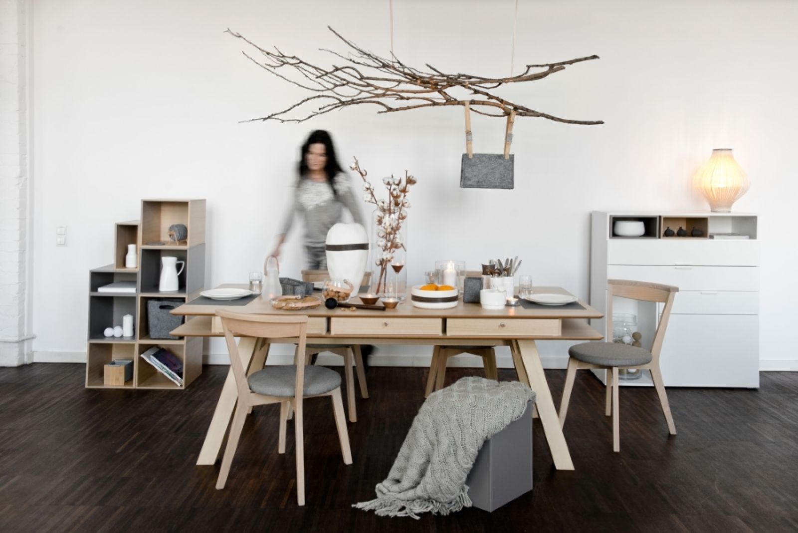 Spójrzcie tylko, jak stół z kolekcji 4 You zaaranżowała firma VOX. Niby nic spektakularnego, a jednak aż chce się przy nim usiąść. Właściwie grzechem byłoby zastawiać go czymś więcej. To właśnie dębowe drewno ociepla szare i proste dodatki, a filcowe podkładki położone pod porcelanową zastawą nabierają szlachetnego i eleganckiego charakteru.