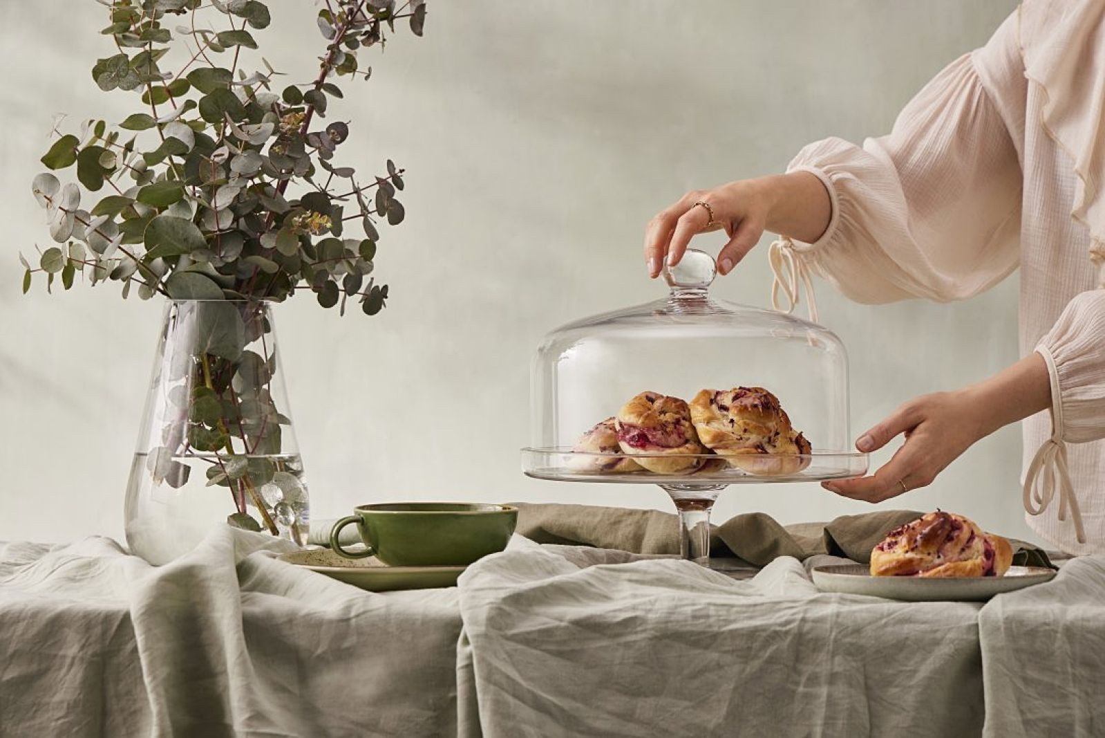 Jak serwować desery, takie jak ciasteczka? Patera ze szklanym kloszem sprawi, że babeczki z bitą śmietaną, muffinki, pączki z lukrem i rogaliki z czekoladą będą prezentowały się tak elegancko jak w najlepszej cukierni. Szczypce do ciastek i łopatka do babeczek ułatwią gościom nakładanie porcji słodkości na talerzyki bez dotykania ich rękami.