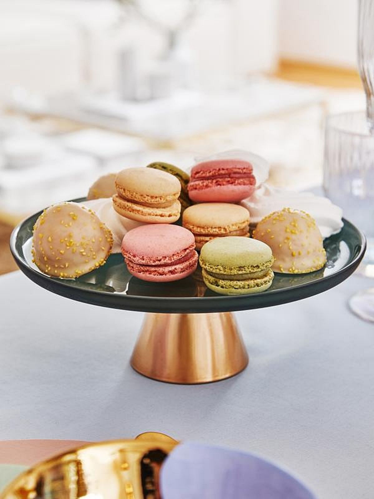 Również piętrowa etażerka jest dobrym sposobem serwowania przeróżnych słodkości. Ułożone na niej ciasteczka wyglądają bardzo apetycznie i tworzą przy okazji piękną dekorację stołu! Twórz z nich kompozycje, np. na każdym poziomie ułóż inny rodzaj deserów, przeplataj je owocami albo makaronikami w różnych kolorach.