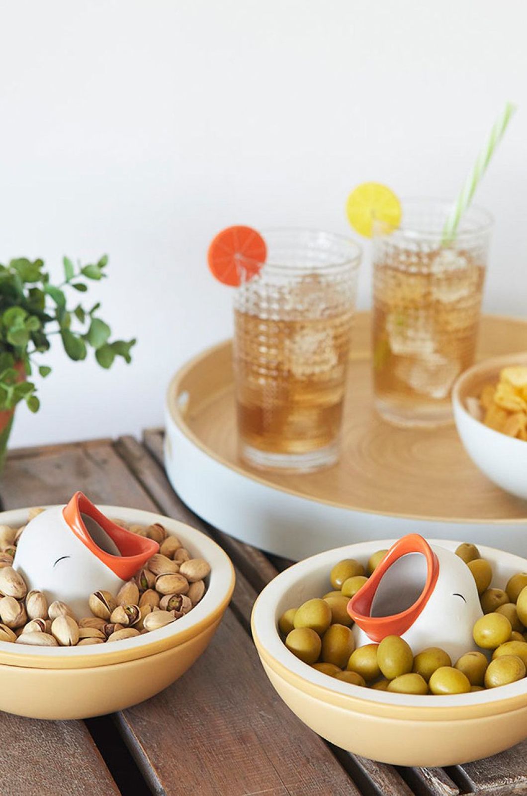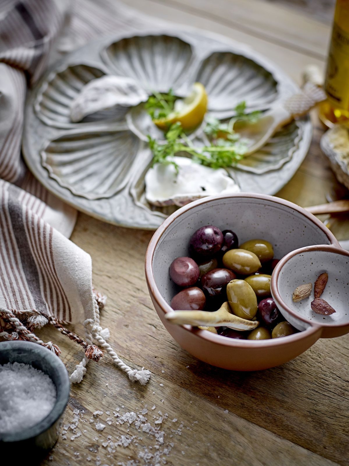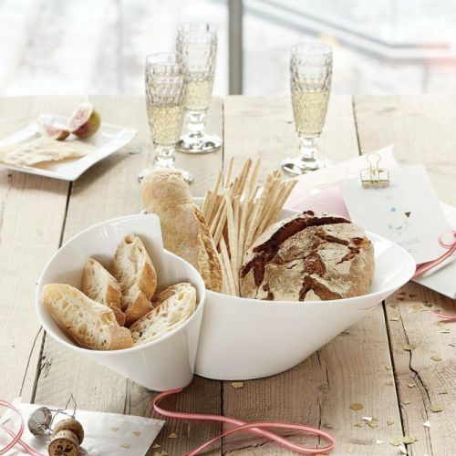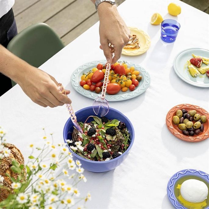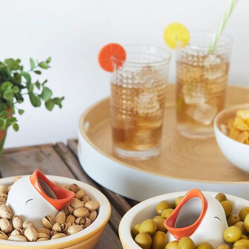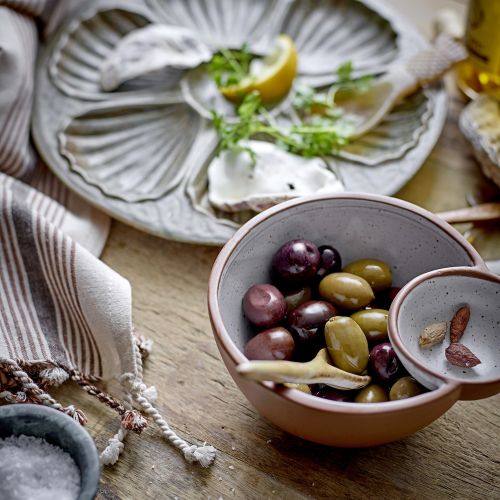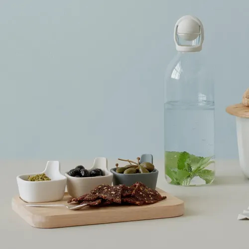 Minimalistyczne przegryzki, jak śledziki z koperkiem i cytryną czy serowe kulki skropione oliwą i posypane granatem, zaprezentują się doskonale w miseczkach przypominających musze ostryg. Naczynia na przekąski często sprzedawane są w komplecie z tacą – to praktyczne rozwiązanie, zwłaszcza na nierównym podłożu, np. kiedy piknikujesz na trawie. Miseczka osadzona w zagłębieniu nie przewróci się na trawie.