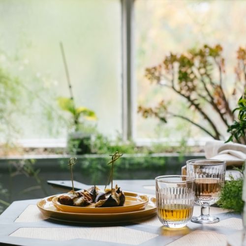 Miseczki i naczynia do serwowania przystawek warto zgrupować na obrotowej tacy – na środku postaw największą miskę, a wokół niej mniejsze i wyższe naczynka na przemian.
