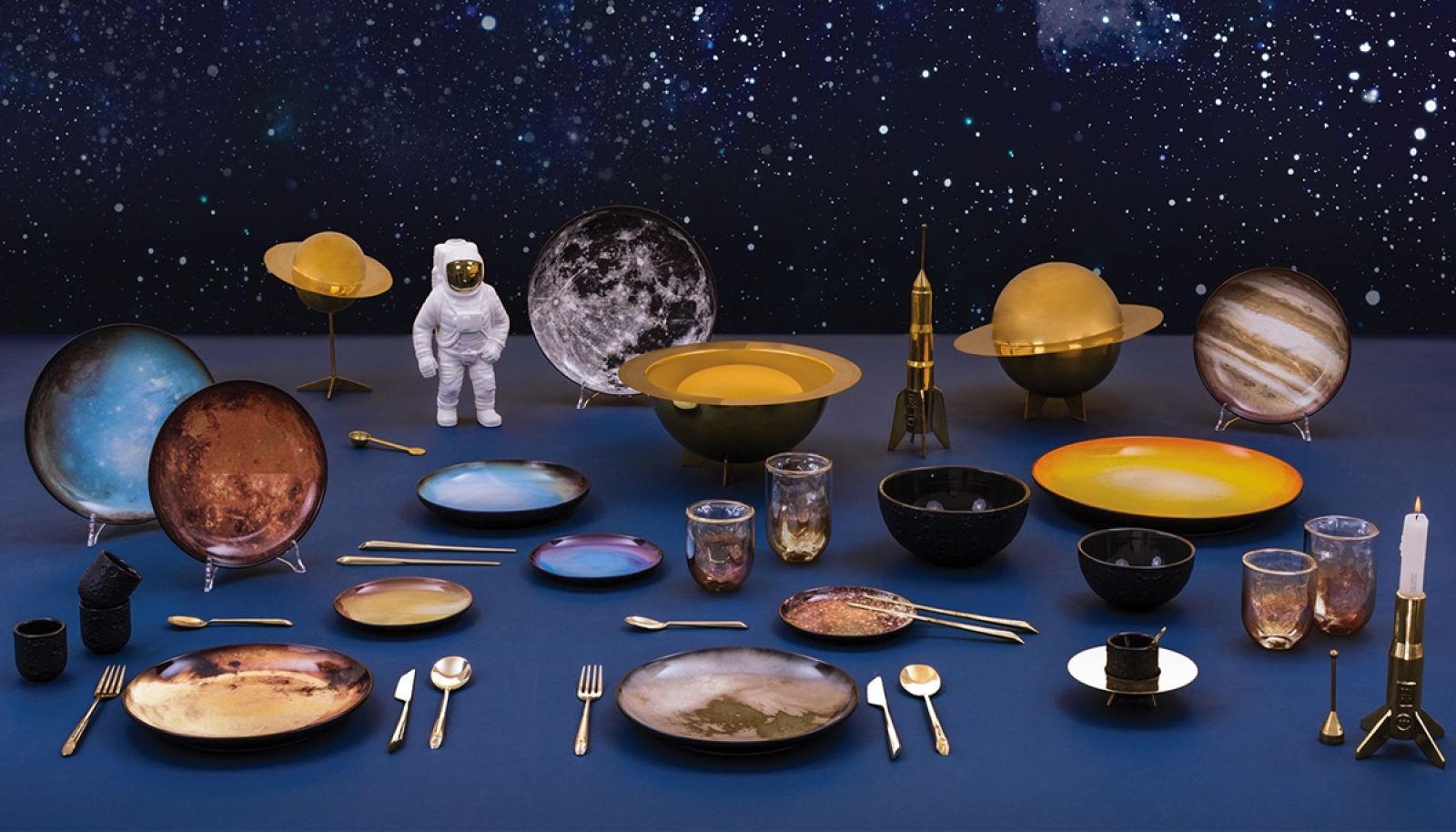 Ciekawostką są motywy kosmiczne. Tutaj, zawsze zaskakująca swoimi pomysłami włoska marka Seletti, wypuścila wraz z marką Diesel serwis iście kosmiczny – talerze wyglądają jak planety. Możemy jeść na Marsie, Wenus czy Saturnie. Czysty odlot!