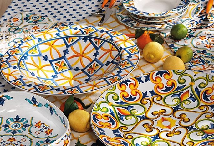 Wiele firm ceramicznych w tym sezonie spogląda na największą włoską wyspę, jej malowniczą kulturę, charakterystyczne kolory i rzemiosło. Tradycyjna ceramika sycylijska zachwyca kolorami – połączenie jaskrawego żółtego, kobaltu, pomarańczu i zieleni pojawia się w nowych interpretacjach na talerzach firm z wielu regionów świata i samych Włoch. Stała się modna i wprowadza do wnętrza śródziemnomorski klimat. Słynne ceramiczne kobiece głowy, które zdobią Taorminę i inne urocze sycylijskie miasteczka możemy zobaczyć na porcelanie marki Baci Milano. Firma Brandani wypuścila wielką serię naczyń nazwaną Medicea w takich letnich, wakacyjnych barwach z typowymi śródziemnomorskimi wzorami.