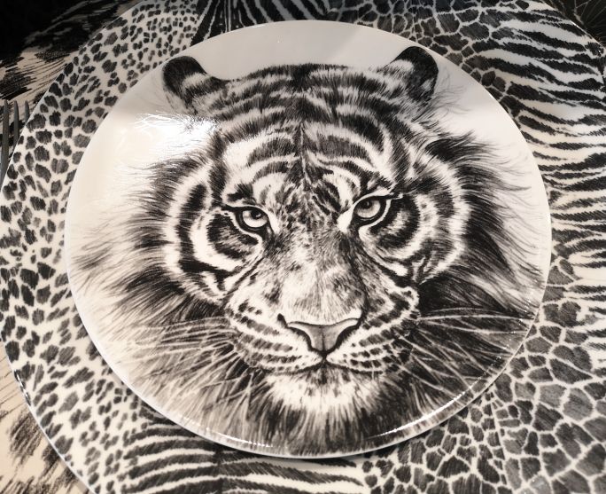 Tygrys, który patrzy na nas groźnym, a nawet trochę głodnym wzrokiem. Egzotyczne widoki z palmami albo wariacje na temat tradycyjnych sycylijskich wzorów. Talerze, które wyglądają jak ulepione z liści bananowca albo migawki z dalekiego kosmosu. Na serwisach obiadowych roi się od kwiatów, pysznych deseni, złota. Aż żal zakrywać je daniami…