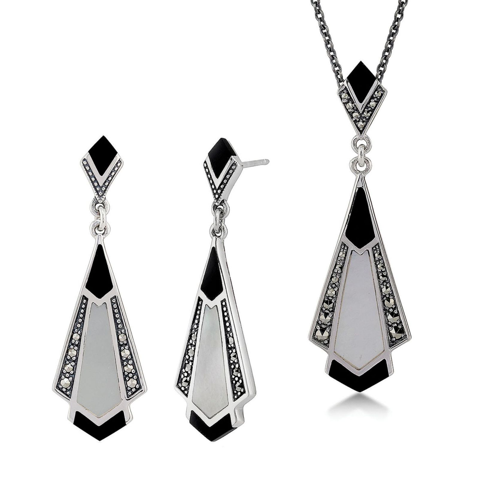 Geometryczne, inspirowane sztuką współczesną (kubizmem, futuryzmem), najczęściej oparte na kontrastowym zestawieniu barw, głównie czerni i bieli (np. w posadzkach w szachownicę) czy czerni oraz złota. Motywy roślinne takie jak palmeta były stylizowane na bardziej uproszczone, wpisane w podstawowe figury geometryczne (romby, kwadraty, ko- ła). Wariacje na temat iglicy nowojorskiego wieżowca Empire State Building pojawiały się zmultiplikowane na tapetach. Detale architektoniczne były namięt-nie przetwarzane w deseniach tkanin, w intarsjach na frontach mebli czy w boazerii ściennej.
