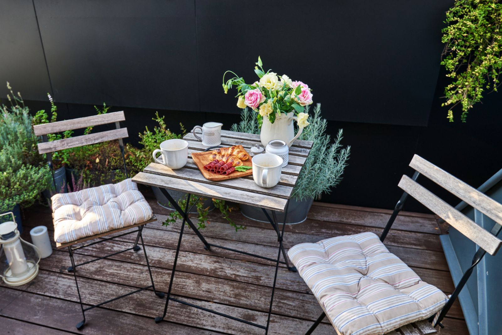 Jeśli wybierasz krzesła, zdecyduj się na kilka składanych. Nie będą zagracać małej przestrzeni, jeśli na balkonie zapragnie usiąść tylko jedna lub dwie osoby. Do każdego krzesła warto dokupić poduszki ogrodowe, które są trwałe i odporne na działanie czynników atmosferycznych.