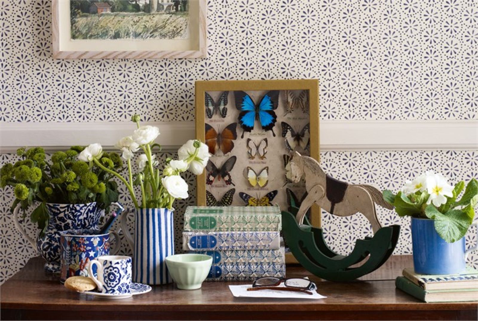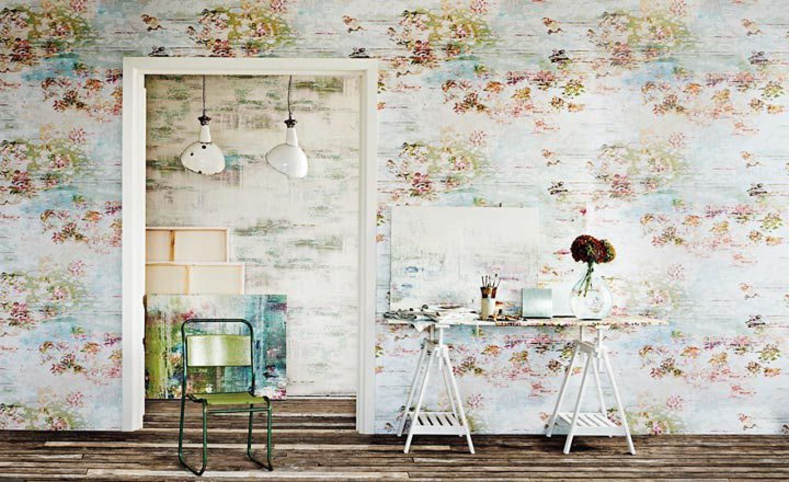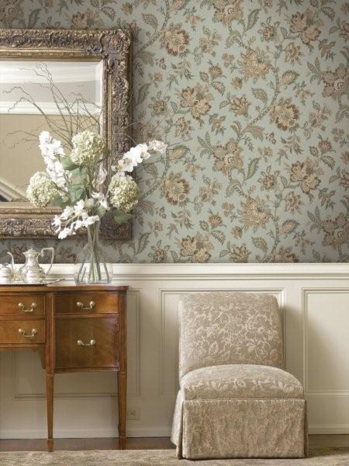 - Wnętrze „uspokoją” i wyciszą tapety w drobne, jasne wzory, np. z motywami roślinnymi.