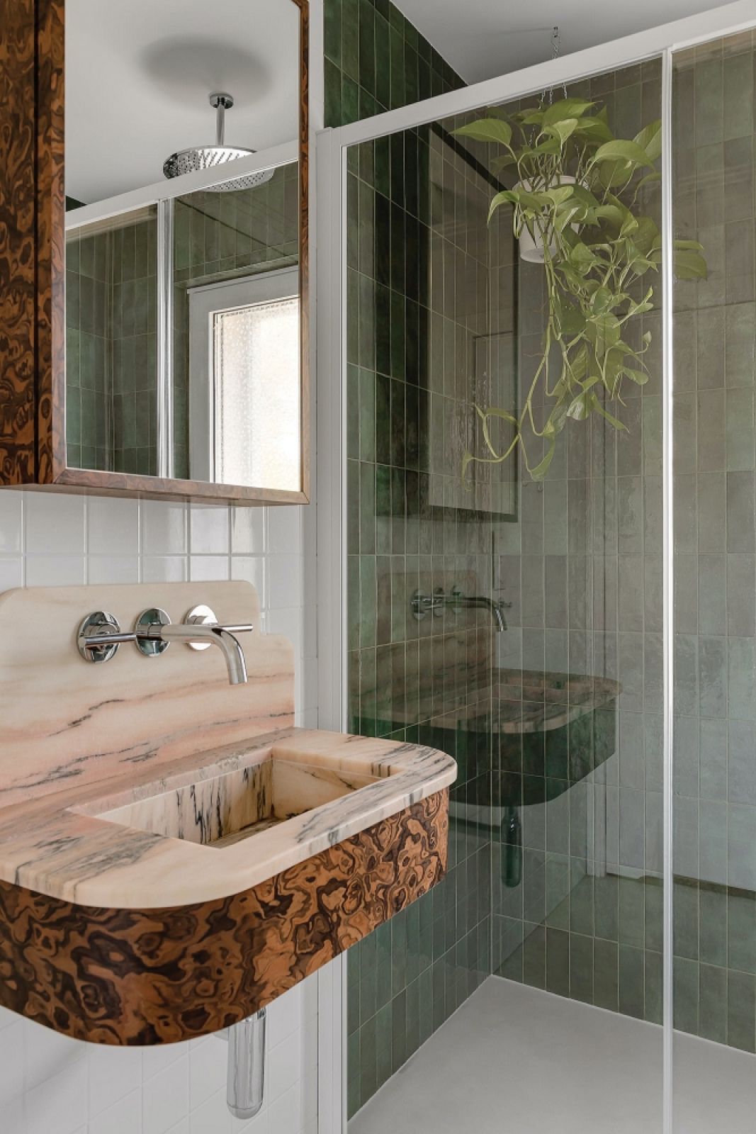 Czeczota pięknie komponuje się z innymi naturalnymi materiałami. W zestawie ze szlachetnym marmurem będzie wyglądać niezwykle elegancko, z kolei surowy nieociosany kamień jeszcze bardziej podkręci jej efektowną strukturę.