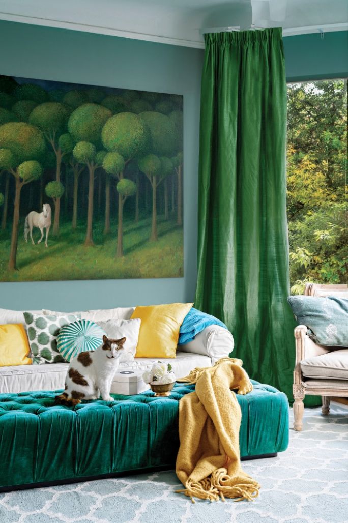 Zdjęcie główne: Aneta Tryczyńska, stylizacja: Katarzyna Sawicka, niżej: aranżacja z sofą obitą tkaniną z kolekcji Fauvisimo, marka Harlequin Impresje Home Collection, impresje.pl