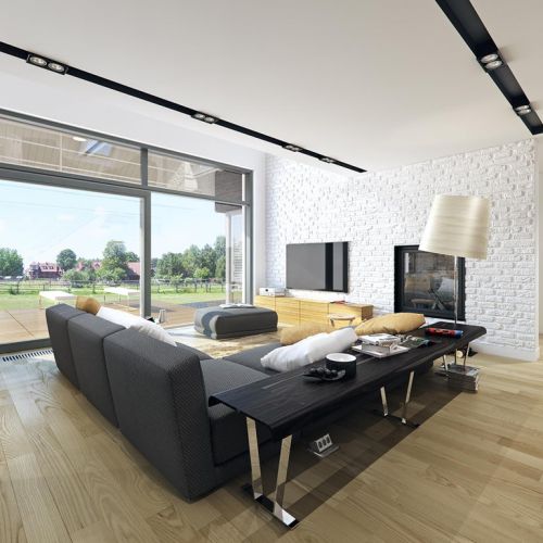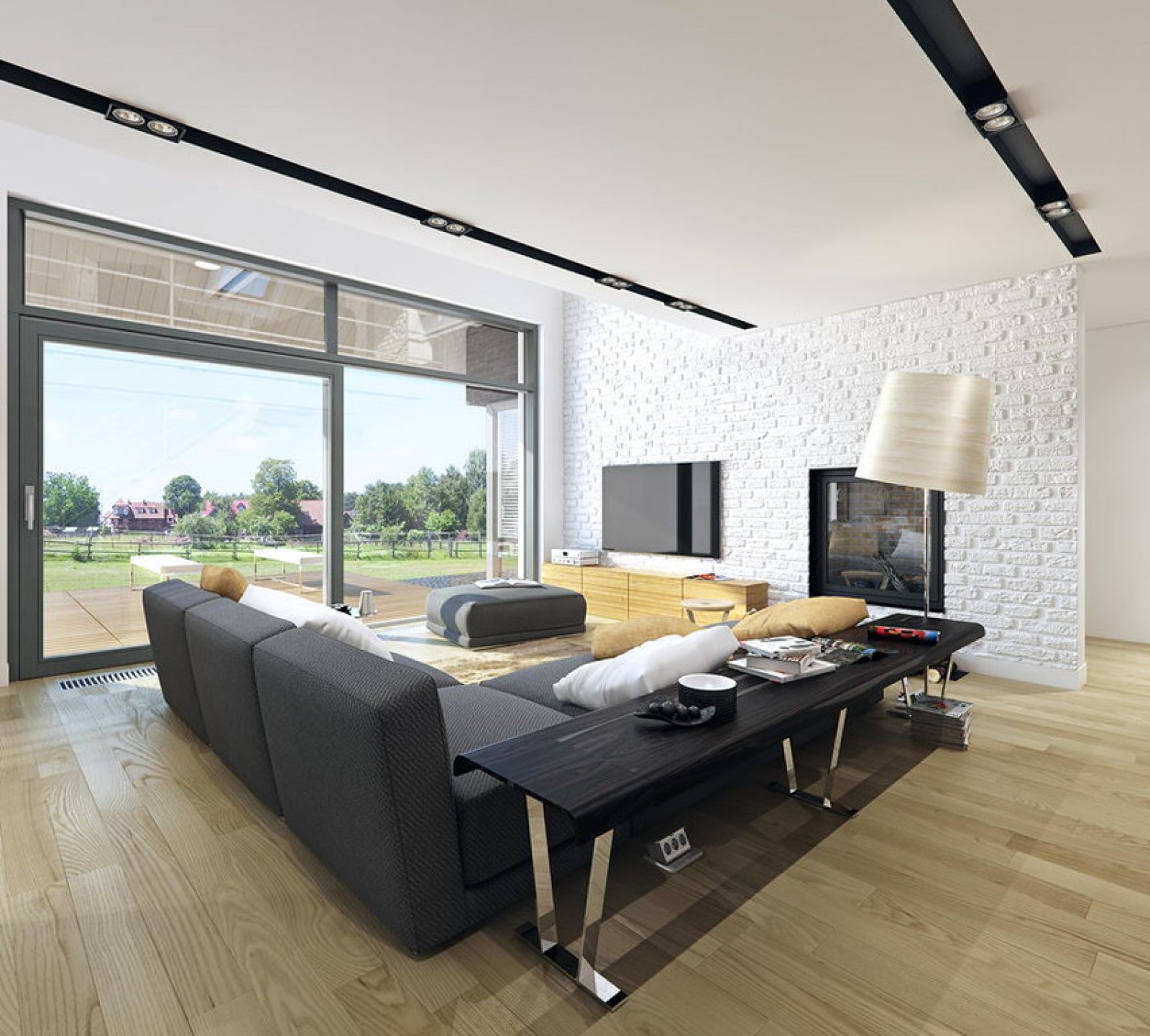 Zaleca się, aby hol i salon były możliwie wysokie – pozwoli to na lepsze doświetlenie wnętrz i poczucie przestrzeni. W wysokich pomieszczeniach jest również łatwiej wydobyć piękno i cechy charakterystyczne wykorzystanych materiałów na podłodze, ścianach czy wyposażeniu. W domu parterowym warto pozostawić odkryte elementy konstrukcji dachu – wprowadzą wyjątkowy i rustykalny charakter. Poza tym dobrze jest w części dziennej maksymalnie otworzyć wnętrze na ogród – przynajmniej z jednej strony.