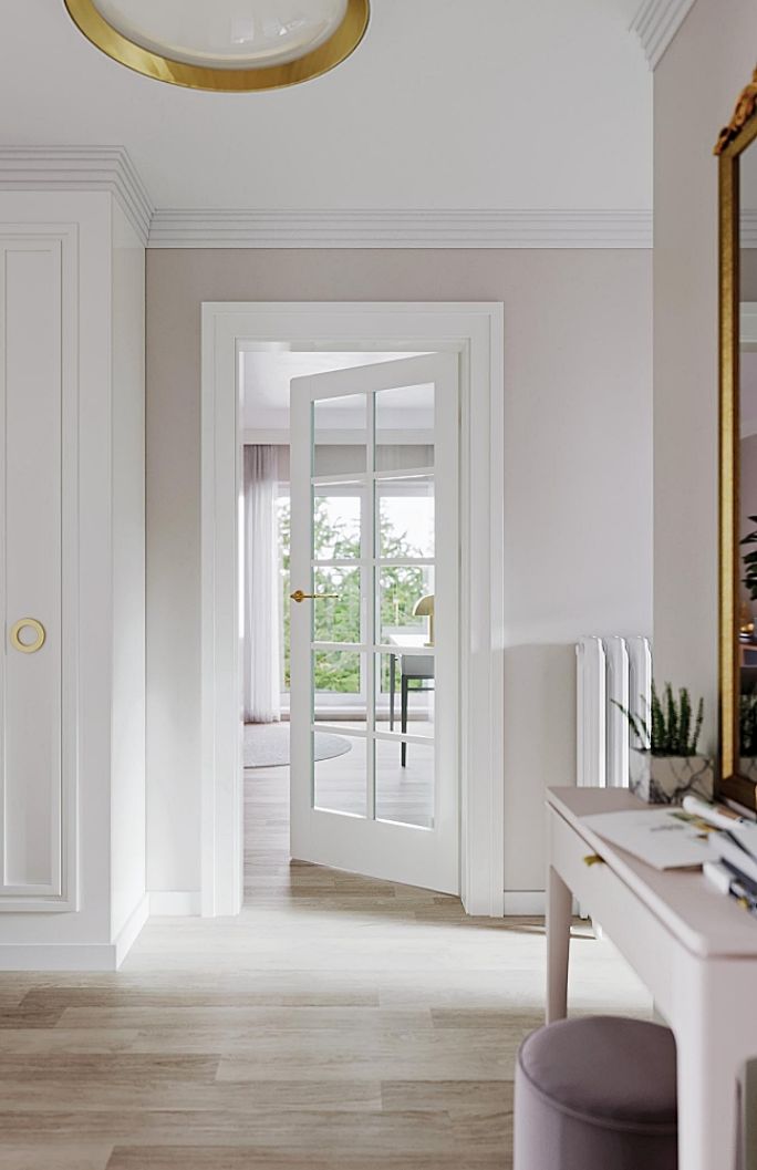 Drzwi przeszklone – pozwalają doświetlić wnętrza i optycznie je powiększają, sprawdzą się w salonie, kuchni czy korytarzu,
