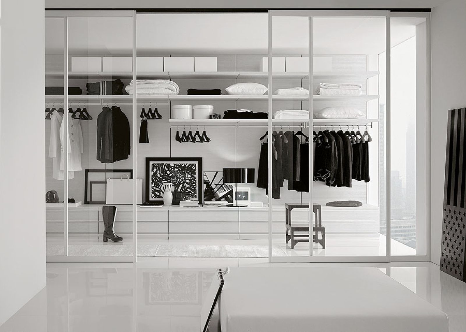 Jeszcze niedawno najmodniejsze garderoby przypominały sezam – ukryty za niemal niewidocznymi, zlewającymi się ze ścianą drzwiami. Dziś ukazują swoje skarby przez przezroczyste drzwi, prezentują je dumnie w witrynach jak porcelanę w salonach albo zabytki w muzealnych gablotach. Specjalne podświetlenia podkreślają urodę tkanin i dodatków. Kiedyś, wyłącznie praktyczne, teraz zmieniają się w świątynie mody.