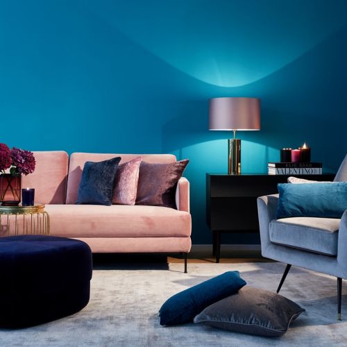 > Zobacz aranżację salonu w najmodniejszym odcieniu błękitu <