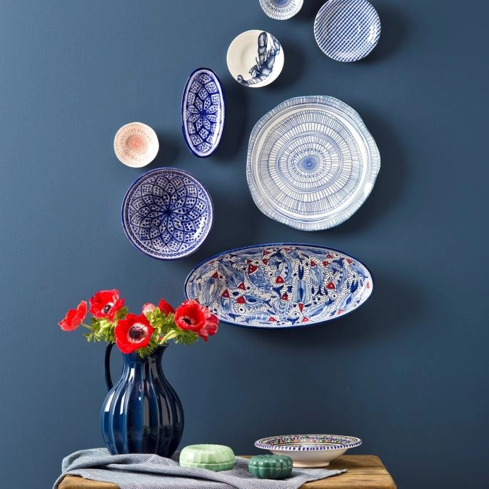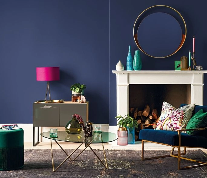 Jakie dodatki wybrać do granatowej ściany w salonie?