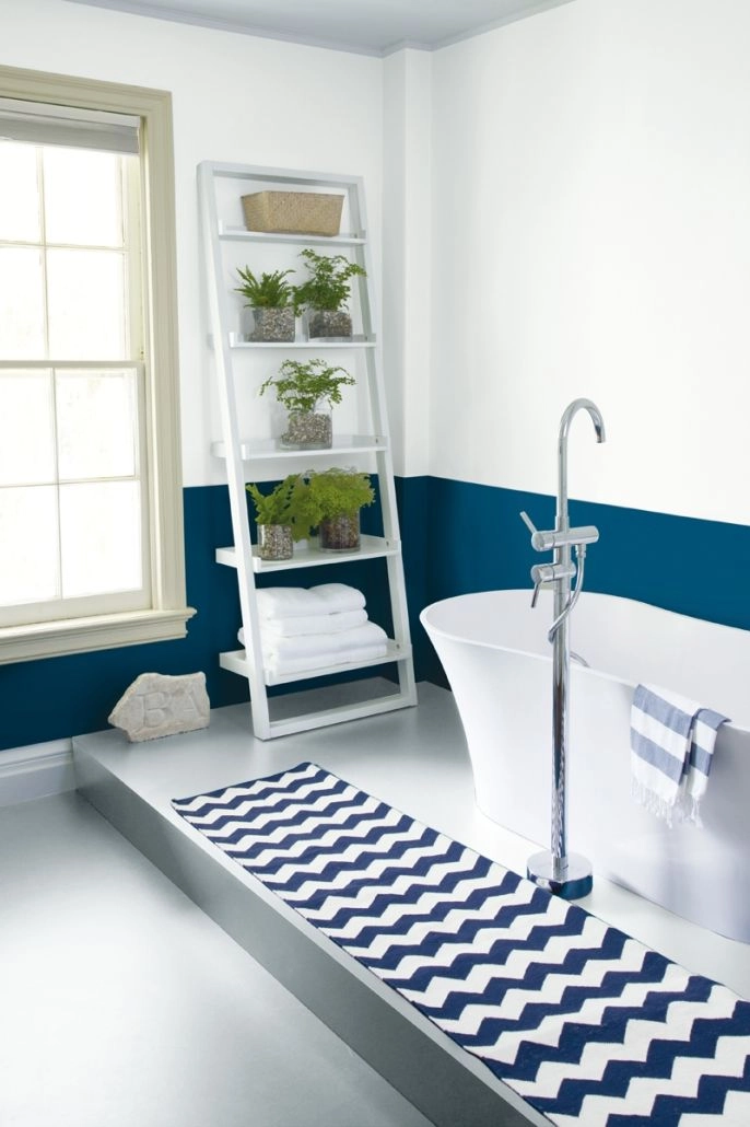 Kolory ścian – granatowy w łazience