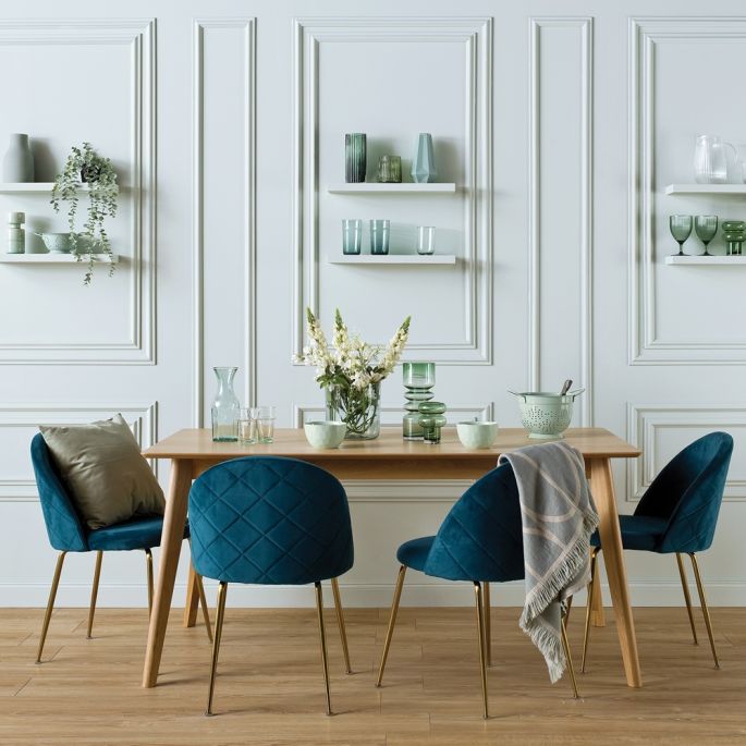 Kontrastowo – niebieska ściana i dębowa podłoga