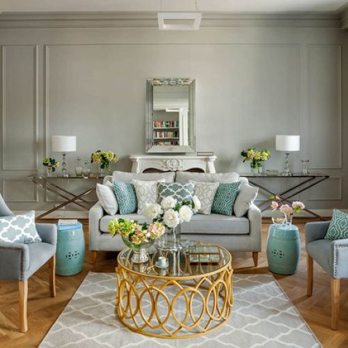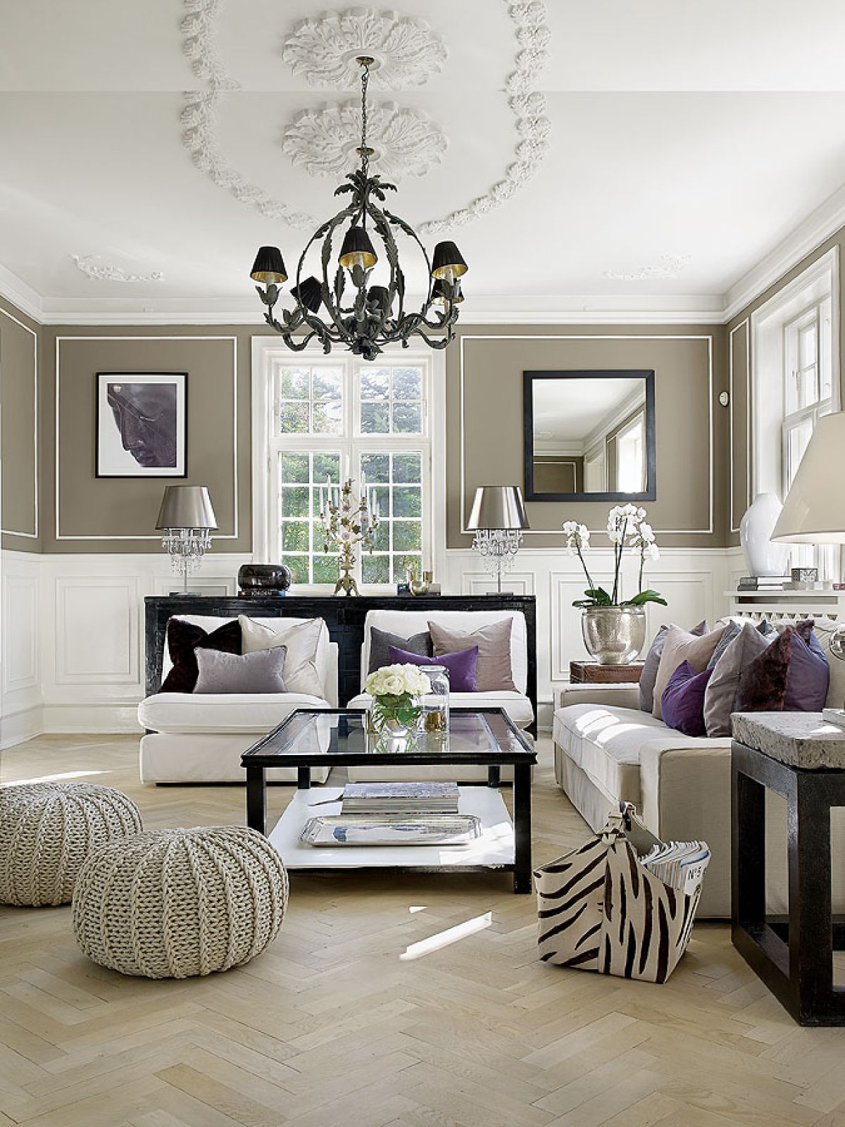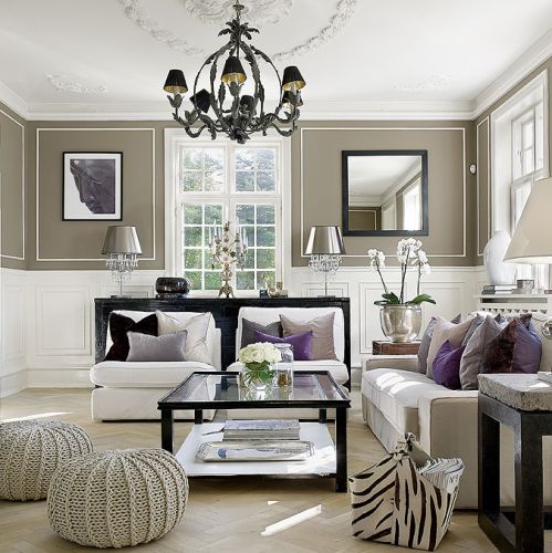 Niezbędne dodatki do mieszkania w stylu glamour to srebrna zastawa, wzorzyste, ale stonowane w barwach tapety, lustra, świeczniki, puzderka na biżuterię. Zaś na ścianach są dekoracyjne panele lub klasyczne sztukaterie.