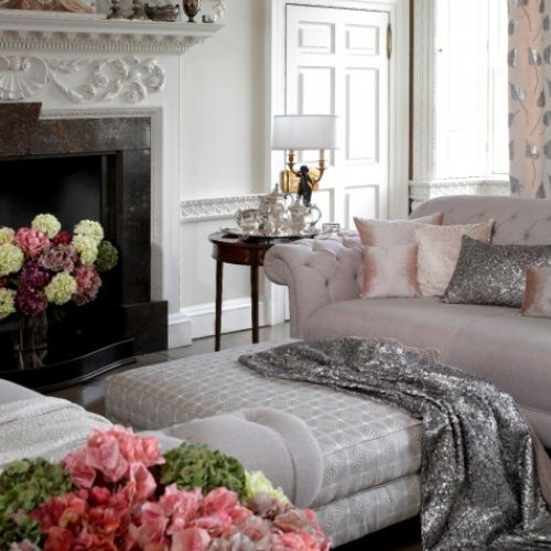 W mieszkaniu w stylu glamour nie powinno zabraknąć eleganckiej konsoli, stołu ze szklanym blatem, łóżka z pikowanym zagłówkiem, sofy Chesterfield, krzeseł tapicerowanych z wysokimi oparciami, toaletki oraz foteli obitych skórą albo aksamitem. Klasyczne kolory stylu glamour to: biały, czarny, srebrny, złoty, beżowy, różowy, głęboki fiolet oraz czekoladowy i szary.