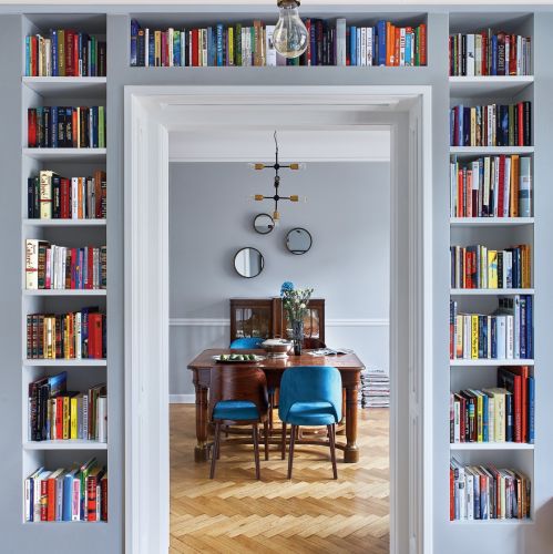 Miłośnikom książek mającym artystyczną duszę polecamy ułożenie zbioru w zgrabny stosik we wnęce. Półki wiszące na książki przymocowane na różnych wysokościach ściany, w nieregularnych odstępach od siebie również mogą stworzyć kreatywną konstrukcję, która urozmaici przestrzeń domowej biblioteki.