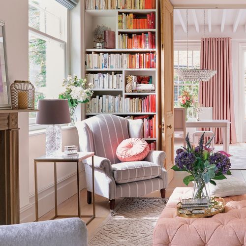 Fotel z wysokim oparciem ustaw obok regału albo półek z książkami (te ulubione zawsze warto mieć pod ręką), postaw przy nim lampę i puf – wyciągniesz na nim nogi i odstawisz kubek z ciepłą herbatą.