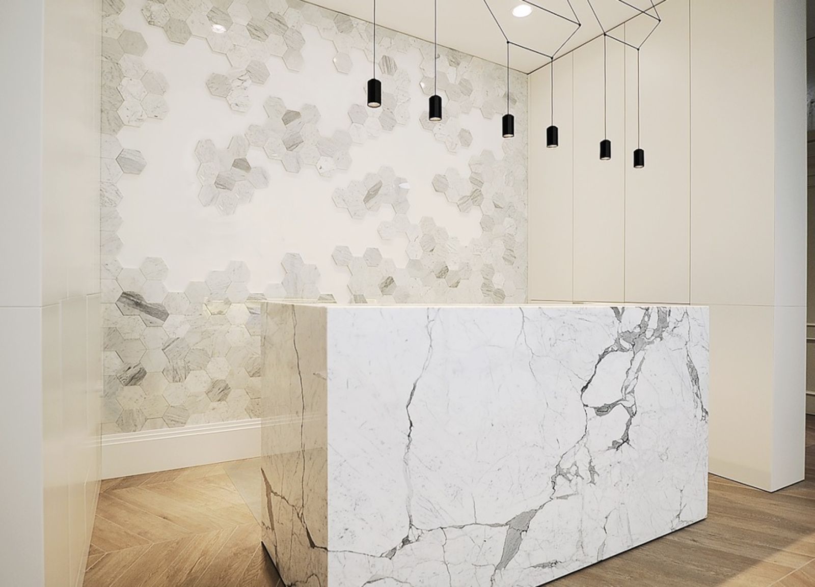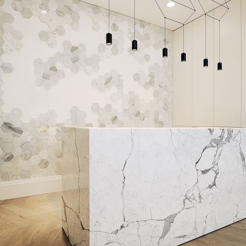 We wspomnianej kolekcji można wybierać między 7 kształtami i 12 kamieniami, które są połączone ze sobą w grupy. Dla przykładu: decydując się na hexagon, producent daje możliwość wyboru między marmurem, bazaltem i dolomitem – każdy w określonym kolorze.