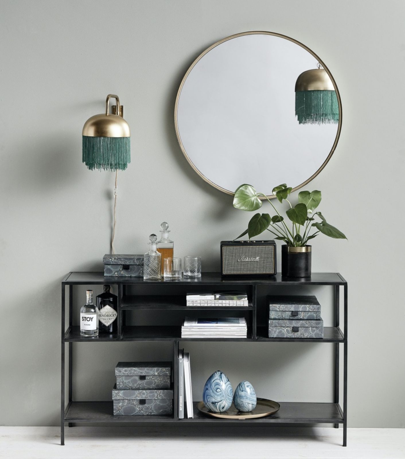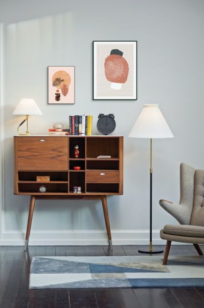 Takiej dekoracyjnej lampy nie można chować w kącie. Pochwal się nią stawiając w najbardziej widocznym punkcie w salonie. Dobrym miejscem będzie stolik kawowy lub pomocniczy, albo specjalny postument. Idealnie sprawdzi się konsola – ten niepozorny mebel zazwyczaj stawia się przy ścianie albo za plecami sofy by ustawić na nim ozdobne bibeloty, rodzinne zdjęcia czy wazon z kwiatami. Z pewnością znajdzie się na niej także miejsce na stojącą lampę do salonu. Mniejsze modele możesz postawić na półce, ażurowym regale dzielącym przestrzeń albo komodzie. Niektórzy stawiają lampy na… okiennym parapecie – to ciekawy sposób na stworzenie wieczorem nastroju w oknie.