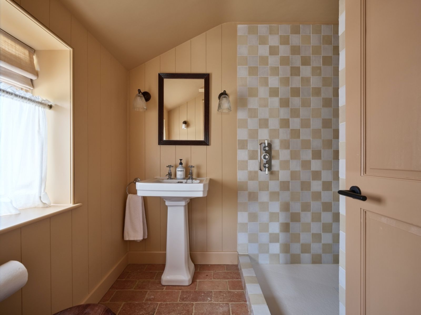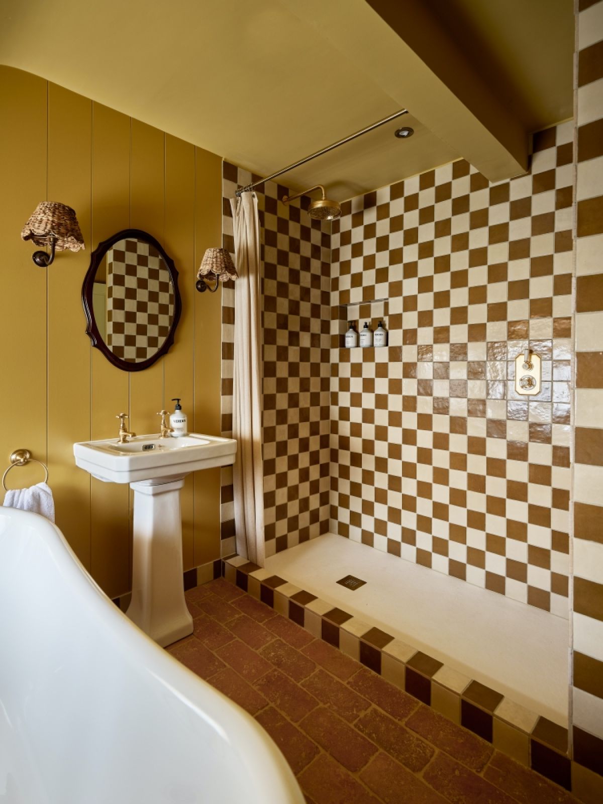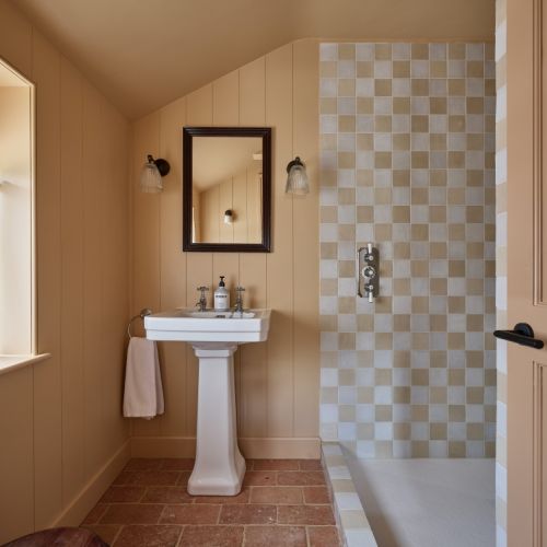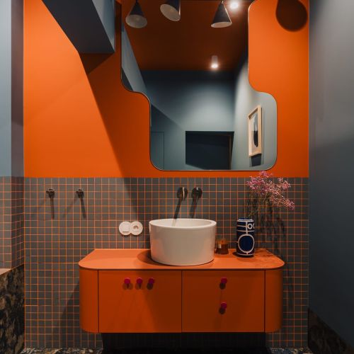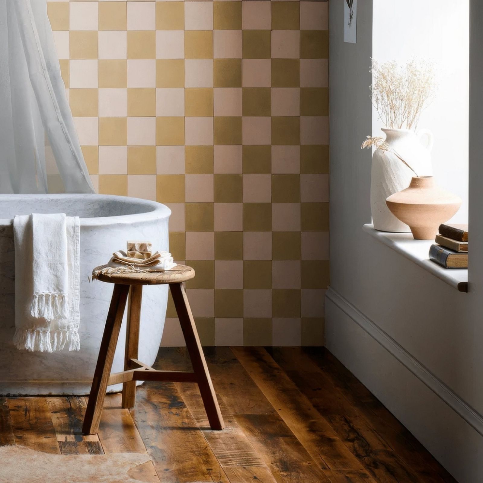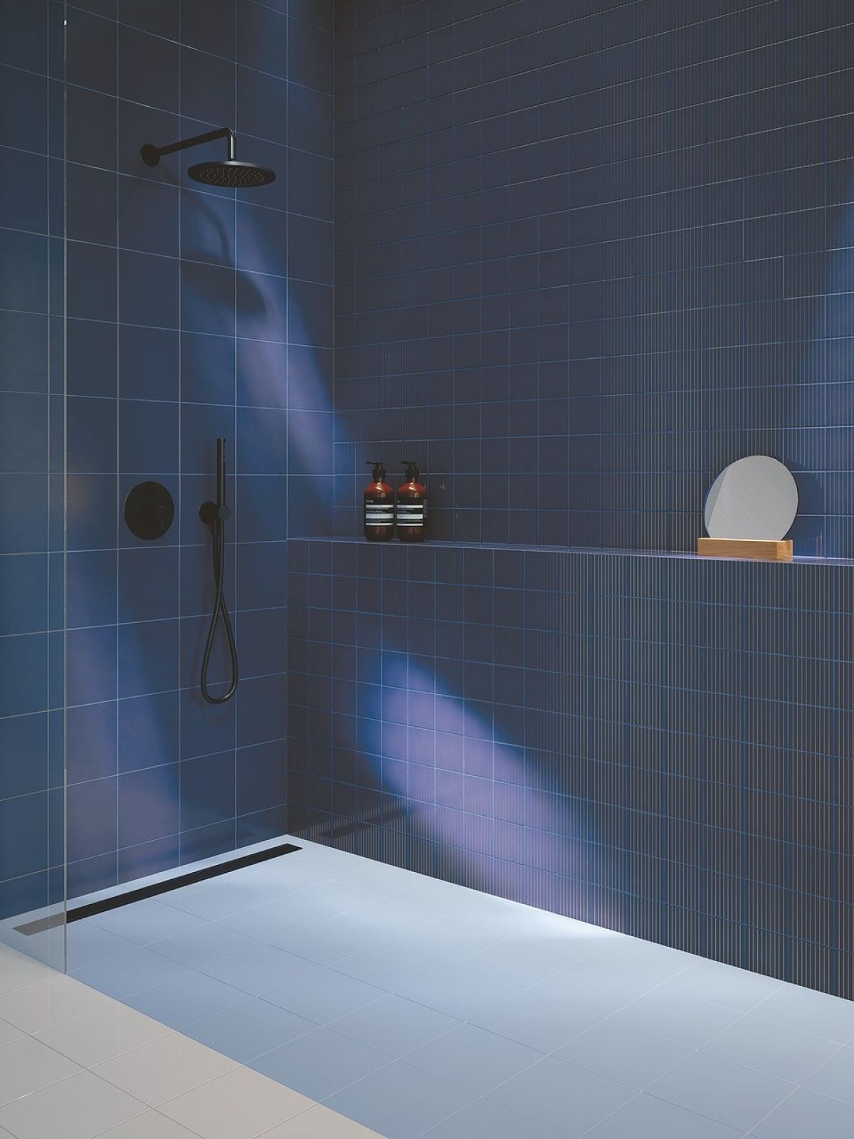 Do wytyczania geometrycznych podziałów świetnie nadają się płytki ścienne – zwłaszcza w łazience. Ich wielkość warto dobrać do metrażu pomieszczenia i efektu, jaki chcesz osiągnąć. Im większe formaty, tym większa kratka. Pamiętaj, że proporcje i skala są bardzo istotne. Mówi o tym architektka Marta Madej: