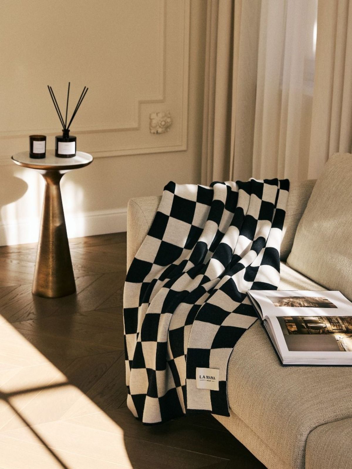Jak stosować ten wzór we wnętrzach? Kratka zdobi – i to nie tylko na tkaniniach (dywanach, kocach, poduszkach, zasłonach czy kraciastej tapicerki na sofach i fotelach). Można ją uzyskać układając płytki i podkreślając efekt kontrastową fugą. Pojawia się w formie tapet, na frontach mebli w postaci geometrycznych intarsji. Tworzą ją krzyżujące się półki w regałach, a także druciane pręty w koszach.