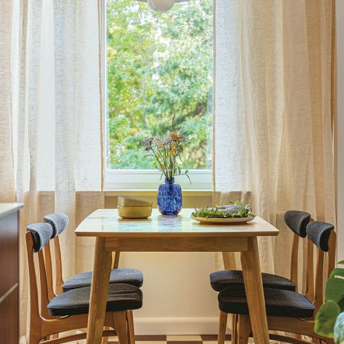 Wystarczy, że obok komody vintage lub kredensu z epoki postawisz „druciany” kwietnik albo krzesło z kratkowanym siedziskiem, a przestrzeń od razu stanie się świeża, energetyczna i pomysłowa.