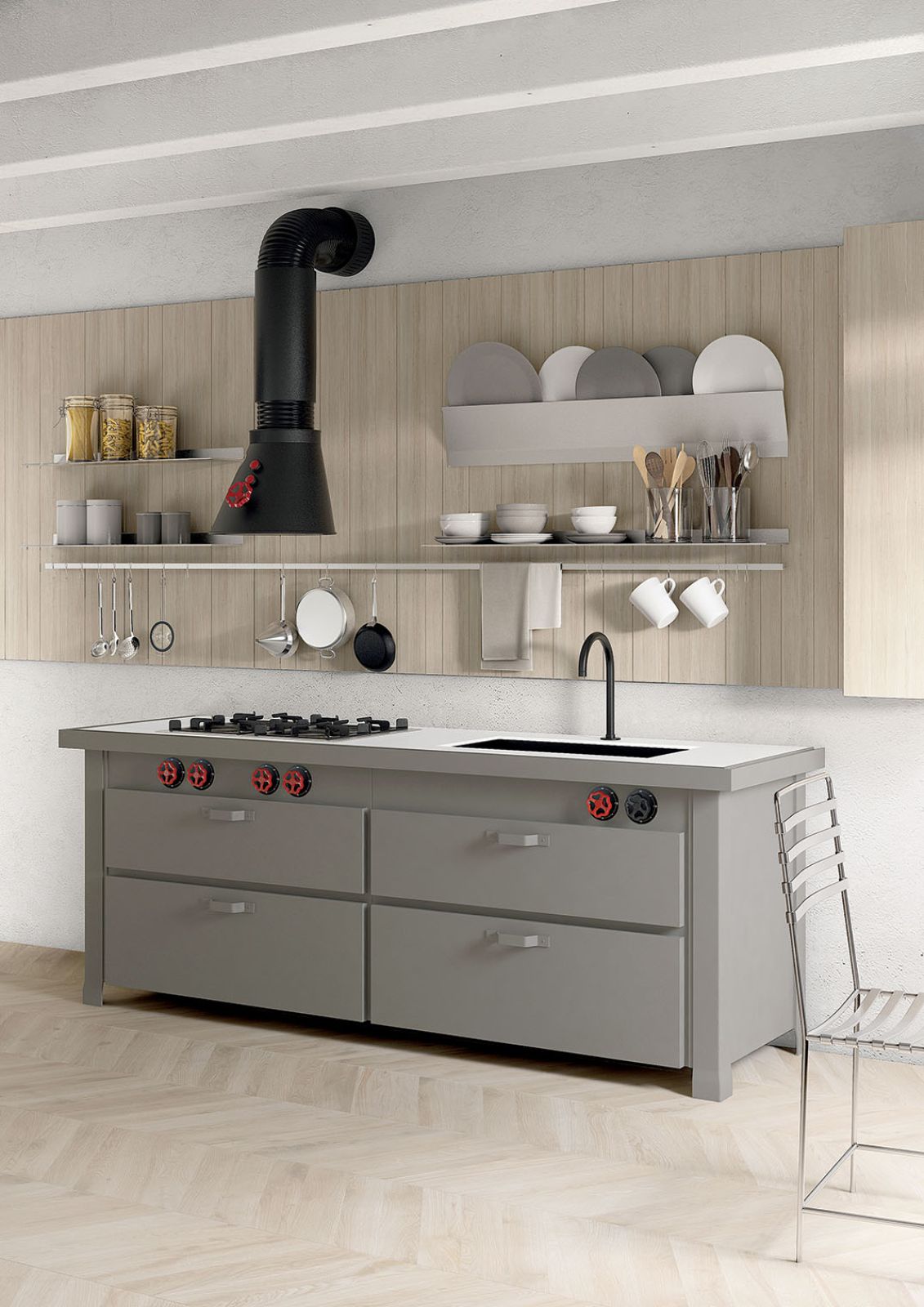 Jest wyrafinowana. Wystarczy popatrzeć na przemysłowe pokrętła albo „fabryczny” okap (kolekcja Mammut) i lampy garnki wiszące nad stołem. Jest perfekcyjnie zrobiona z proszkowo malowanej stali. Wreszcie kuchnia Minà jest niesłychanie wygodna (cały sprzęt można schować w wyspie) i piękna. W wersji Professional możemy mieć nawet kominek opalany drewnem. Marka Minacciolo spodoba się tym, którzy chcą mieć unikatową, inną niż wszystkie, kuchnię.