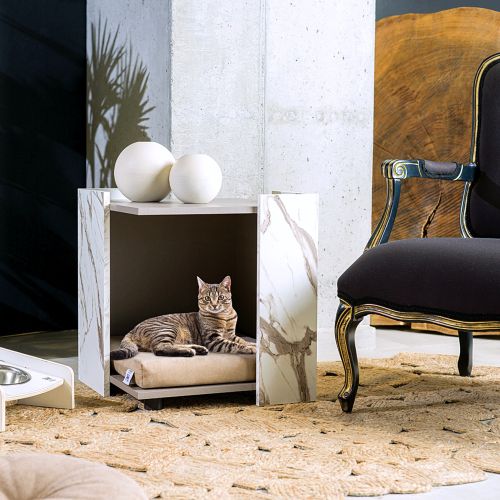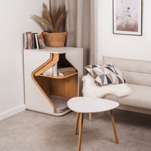 Koty z kolei są indywidualistami. Chociaż też uwielbiają się łasić i przymilać, ponad wszystko cenią sobie święty spokój. Do odpoczynku chętnie wybierają legowiska, w których mogą się schować – zaciszne domki, budki z runa, mięciutkie kokony czy… kartonowe pudła. Każde zaciszne miejsce jest dobre, nawet szafka, w której czeka puszysta poduszka. Pomysłowe posłanka dla kotów mogą być prawie niewidoczne – schowane pomiędzy półkami na książki, pod blatem stolika albo w szafkach.