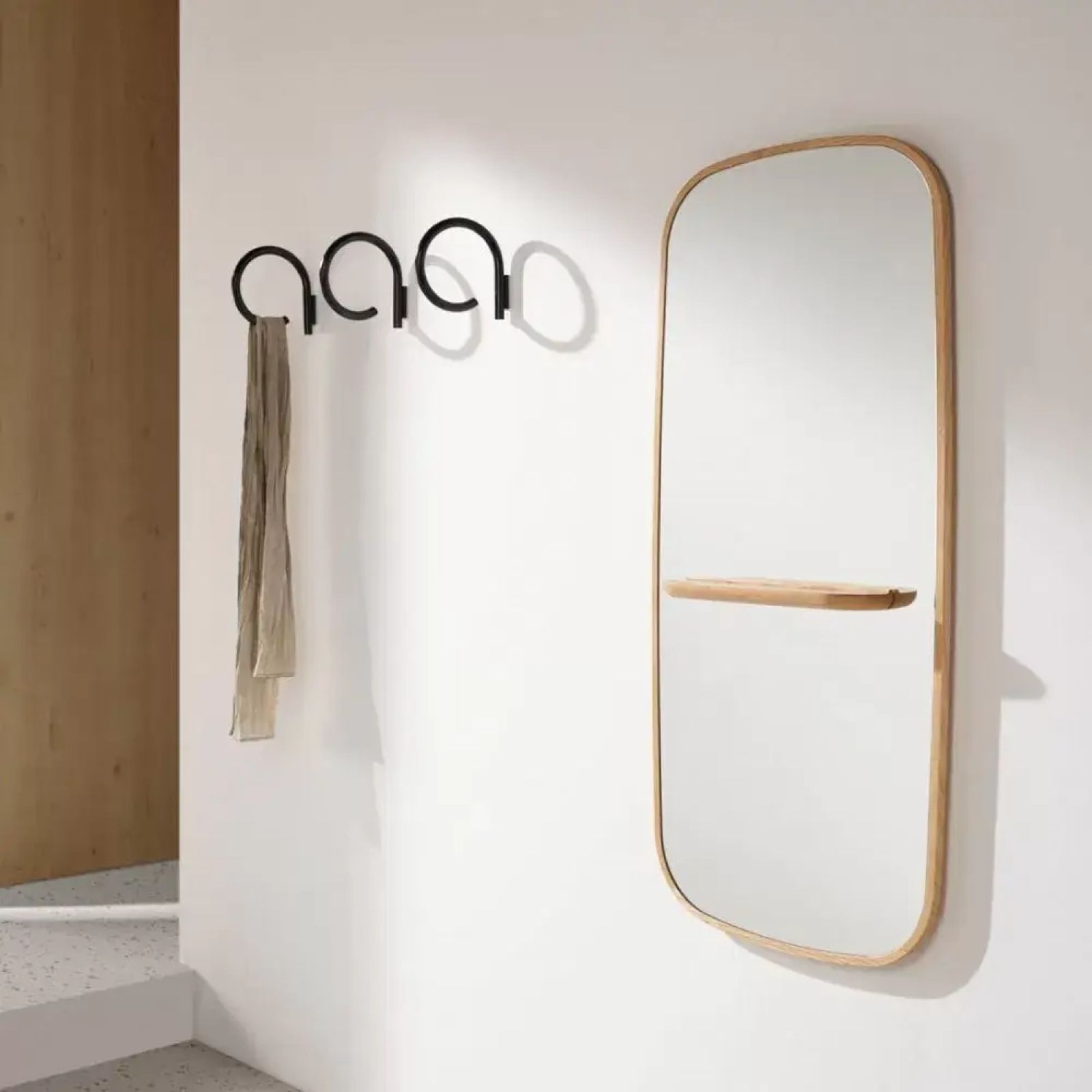 A co, gdyby połączyć lustro w holu z praktycznymi akcesoriami? Powstały już praktyczne rozwiązania, które są szczególnie polecane do małych mieszkań, np. minimalistyczne stojące lustro do przedpokoju połączone z wieszakiem na ubrania, z półką na podręczne drobiazgi i dodatkowymi haczykami na klucze. Zobacz jak niewiele miejsca zajmuje i jak atrakcyjnie się prezentuje. Obok takiego „kombo” możesz postawić ławeczkę albo puf, żeby przysiąść podczas wkładania butów, oraz stojak na parasole.