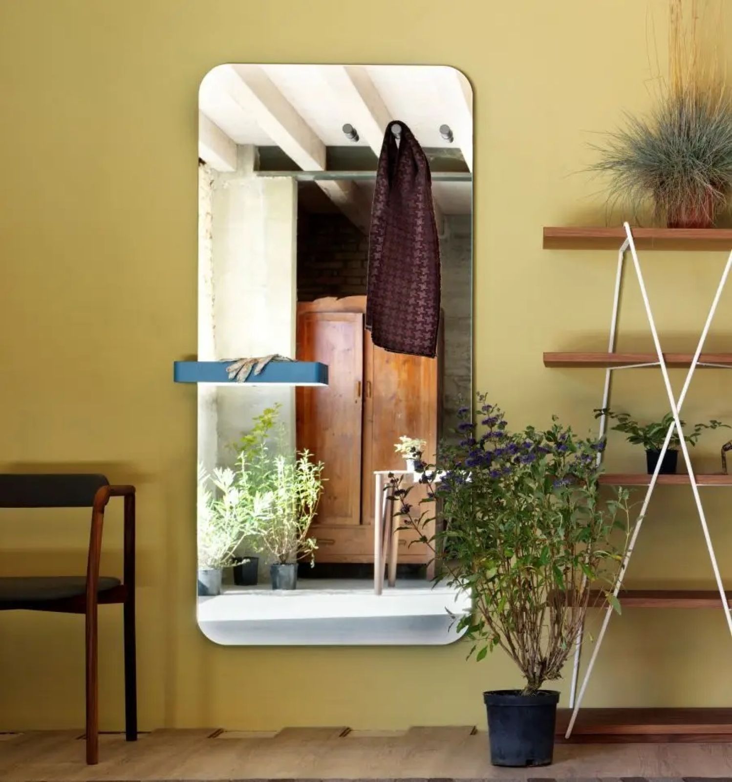 Dobrze, jeśli lustro oparte o ścianę będzie stylem nawiązywać do wystroju wnętrza. Jeśli np. w domu masz skrzynkowe okna albo drzwi ze szprosami, lustro też może posiadać cienkie listewki.
