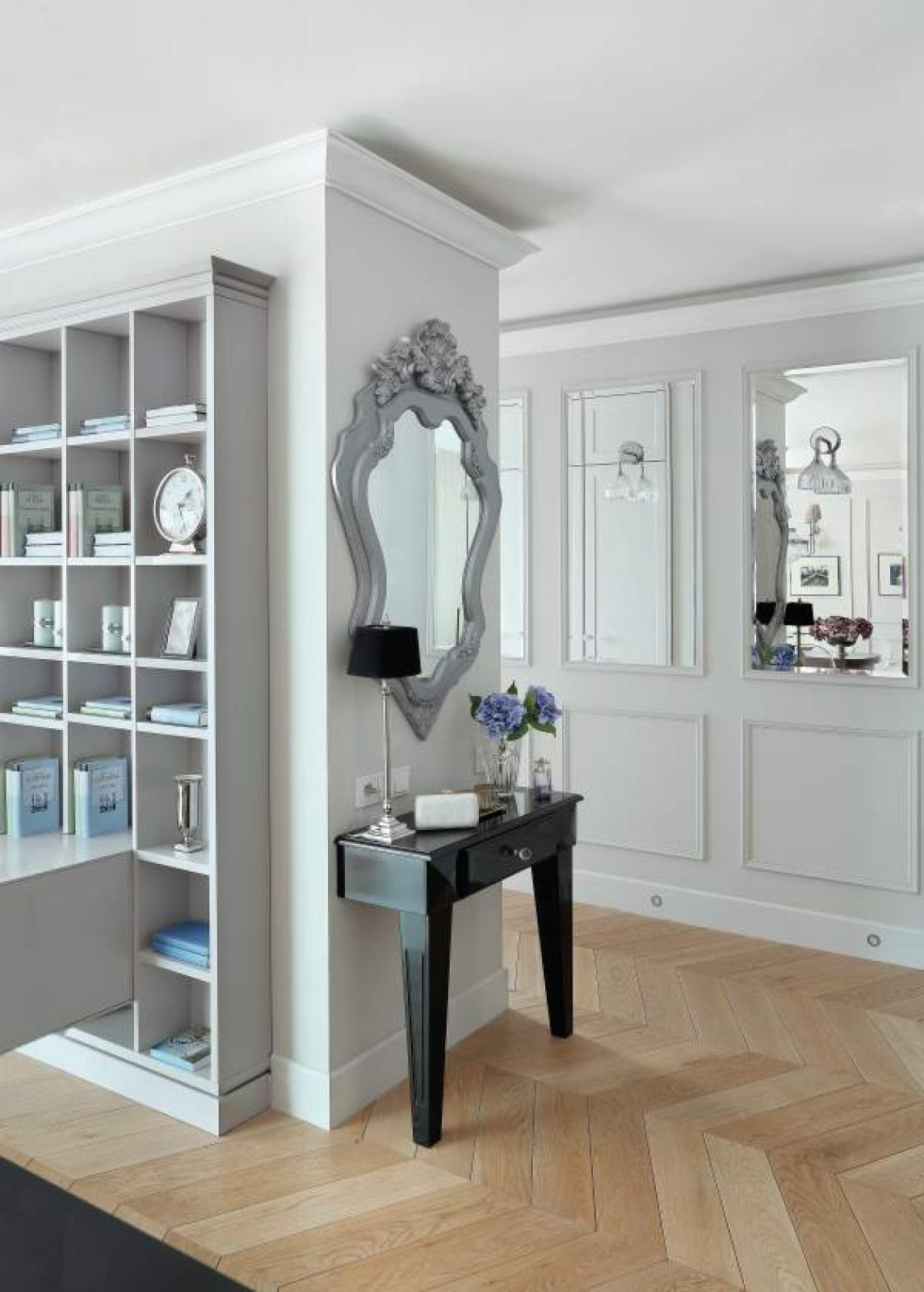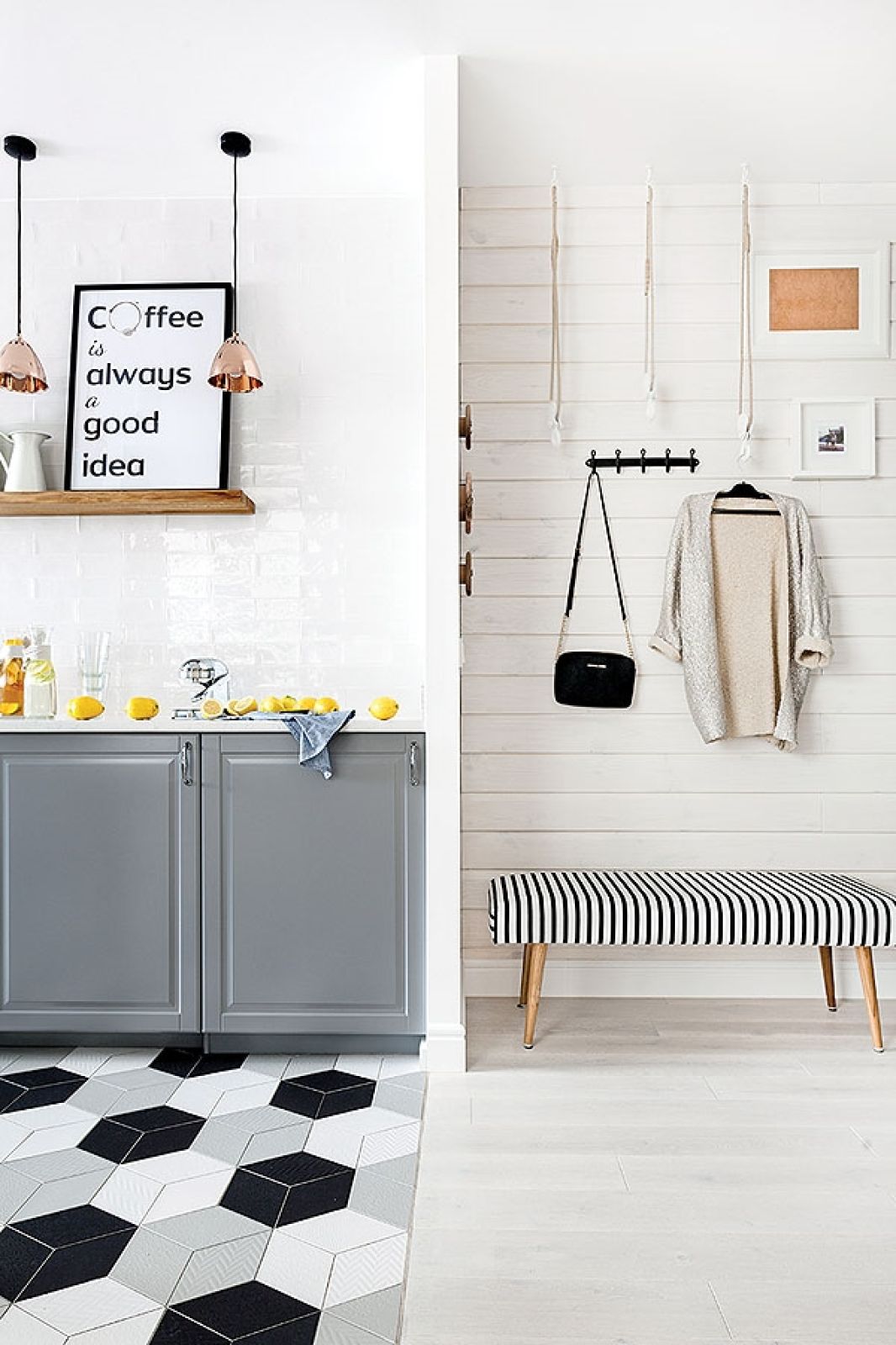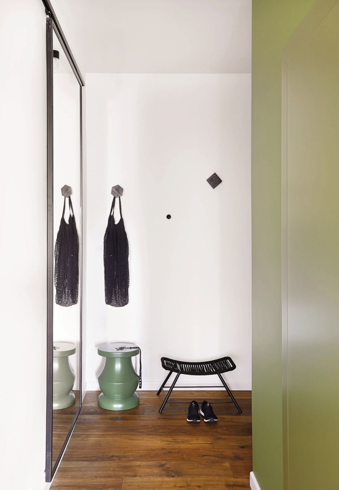 Dobra rada: jeśli mały przedpokój jest otwarty na resztę mieszkania pamiętaj o zachowaniu porządku na codzień! Bałagan nigdzie nie jest mile widziany, ale kiedy staje się on częścią salonu to całość wygląda bardzo źle i niedobrze świadczy o właścicielu.