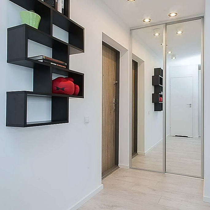 Oprócz dobrze dobranych mebli warto zwrócić uwagę także na inne aspekty urządzania przedpokoju. W małych pomieszczeniach bardzo ważne jest oświetlenie – warto postawić na neutralne światło, które równomiernie rozświetli pomieszczenie. Niezastąpione w tworzeniu wrażenia większej przestrzeni są także lustra, zamontowane np. na drzwiach szafy lub na jednej ze ścian.