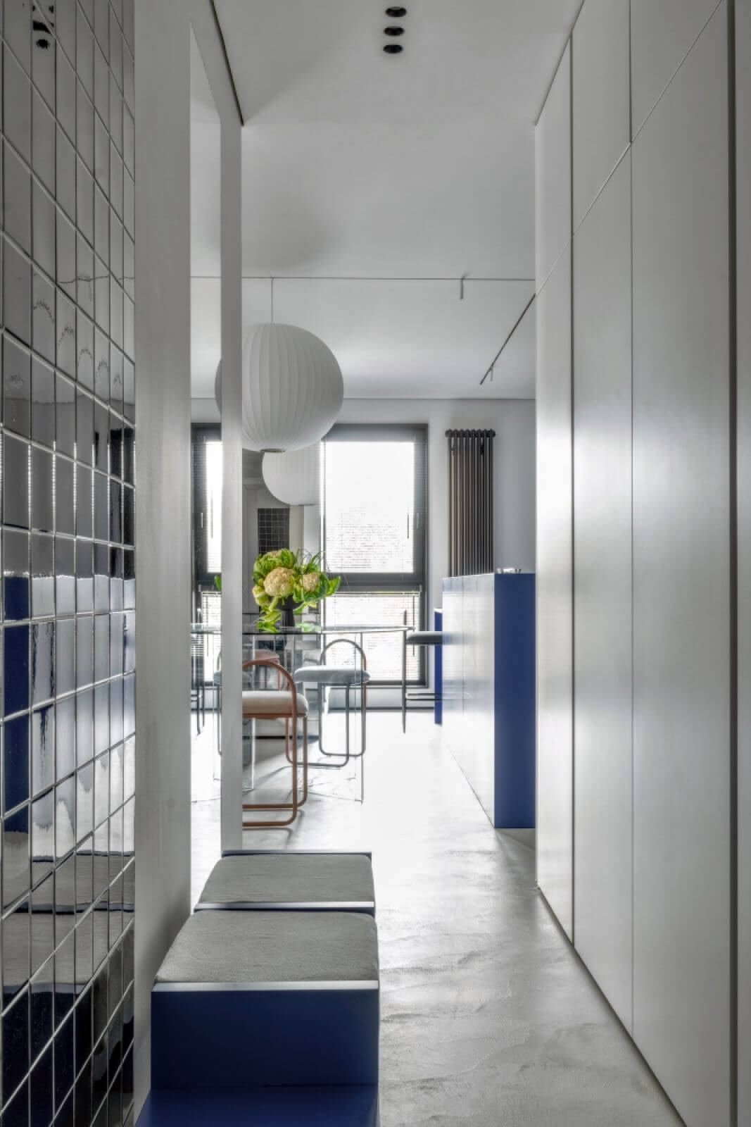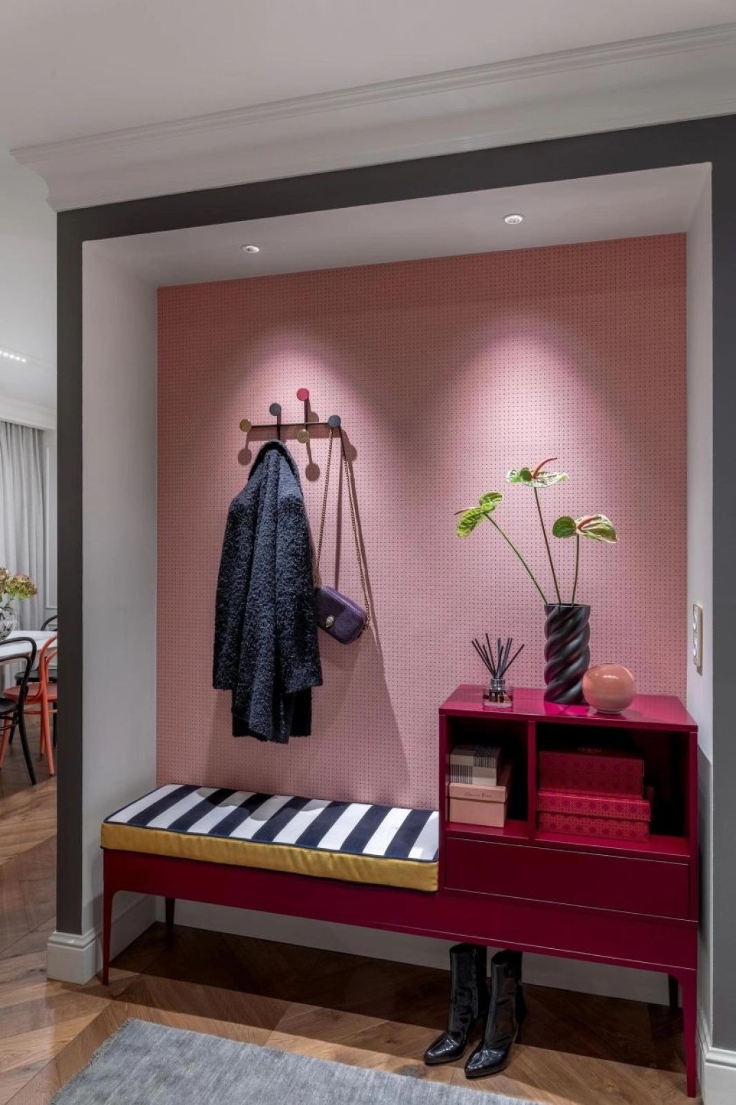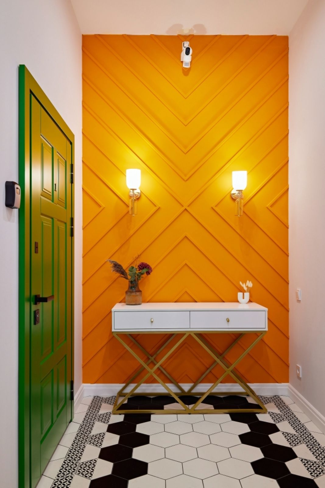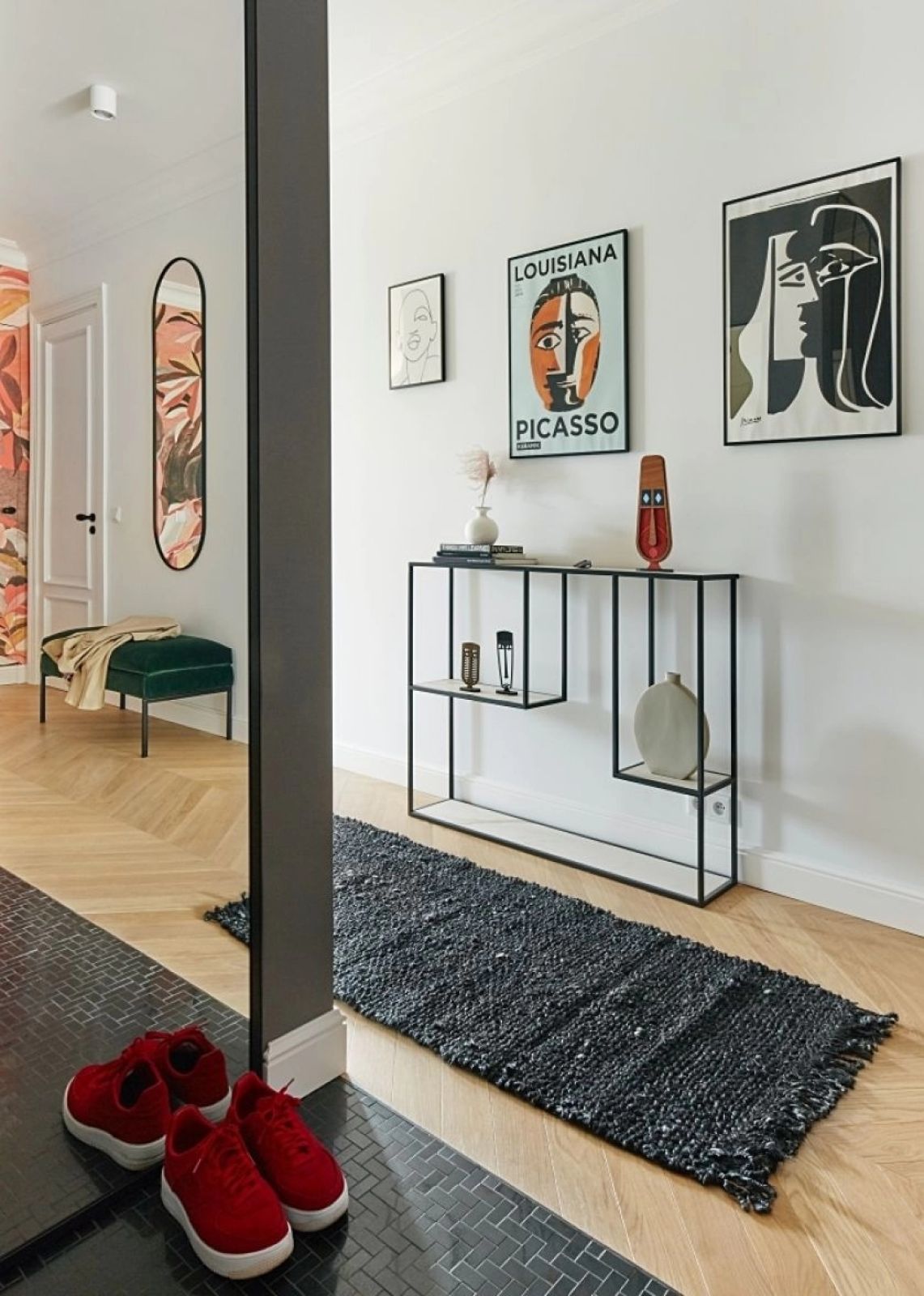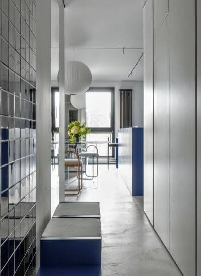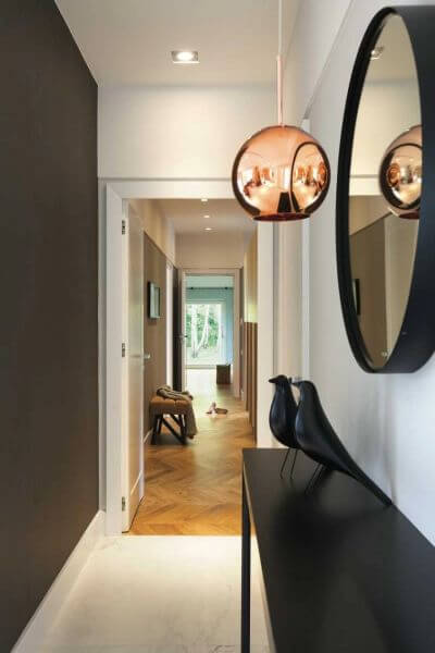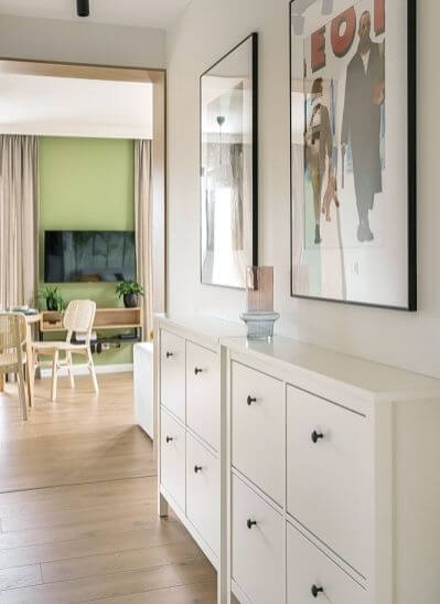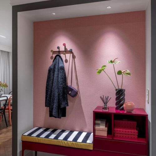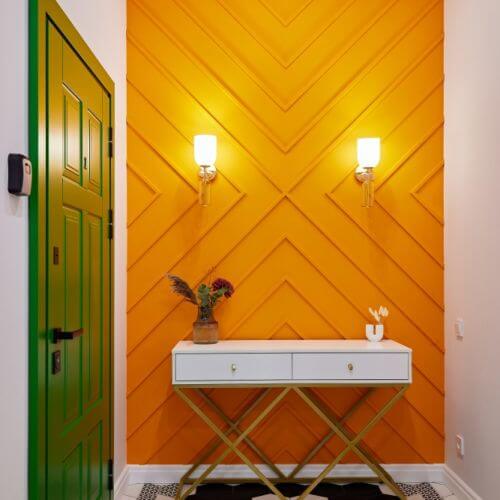 To doskonały pomysł aranżacyjny na długi i wąski przedpokój w bloku, ale nie tylko.
