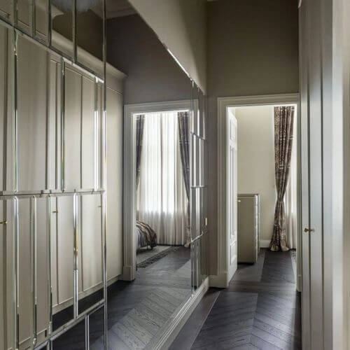 Z pomocą luster – lustra na całą ścianę lub dużego pionowego lustra, które sprawi, że przestrzeń wyda się większa i bardziej przestronna.