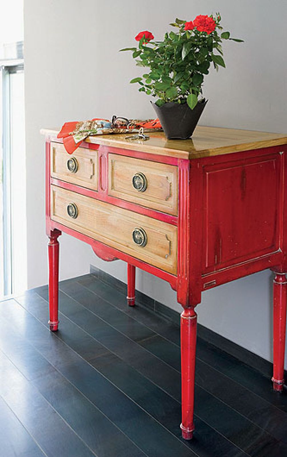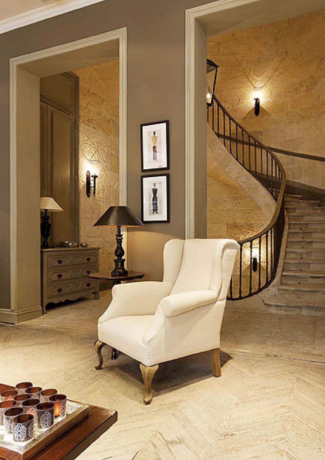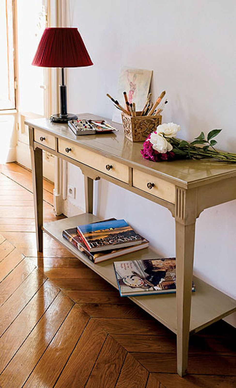 Projektuje klasycznie – lustro, konsola, wieszak – ale za to z wdziękiem. – Czyli po francusku: dużo światła i naturalne materiały. Unika bibelotów. Woli freski na ścianie lub hiszpańskie płytki. Meble? – Jak w prowansalskich siedliskach: przepastna szafa zamykana na klucz z chwostem, komoda z litego drewna. Oczywiście wybarwione i przecierane.