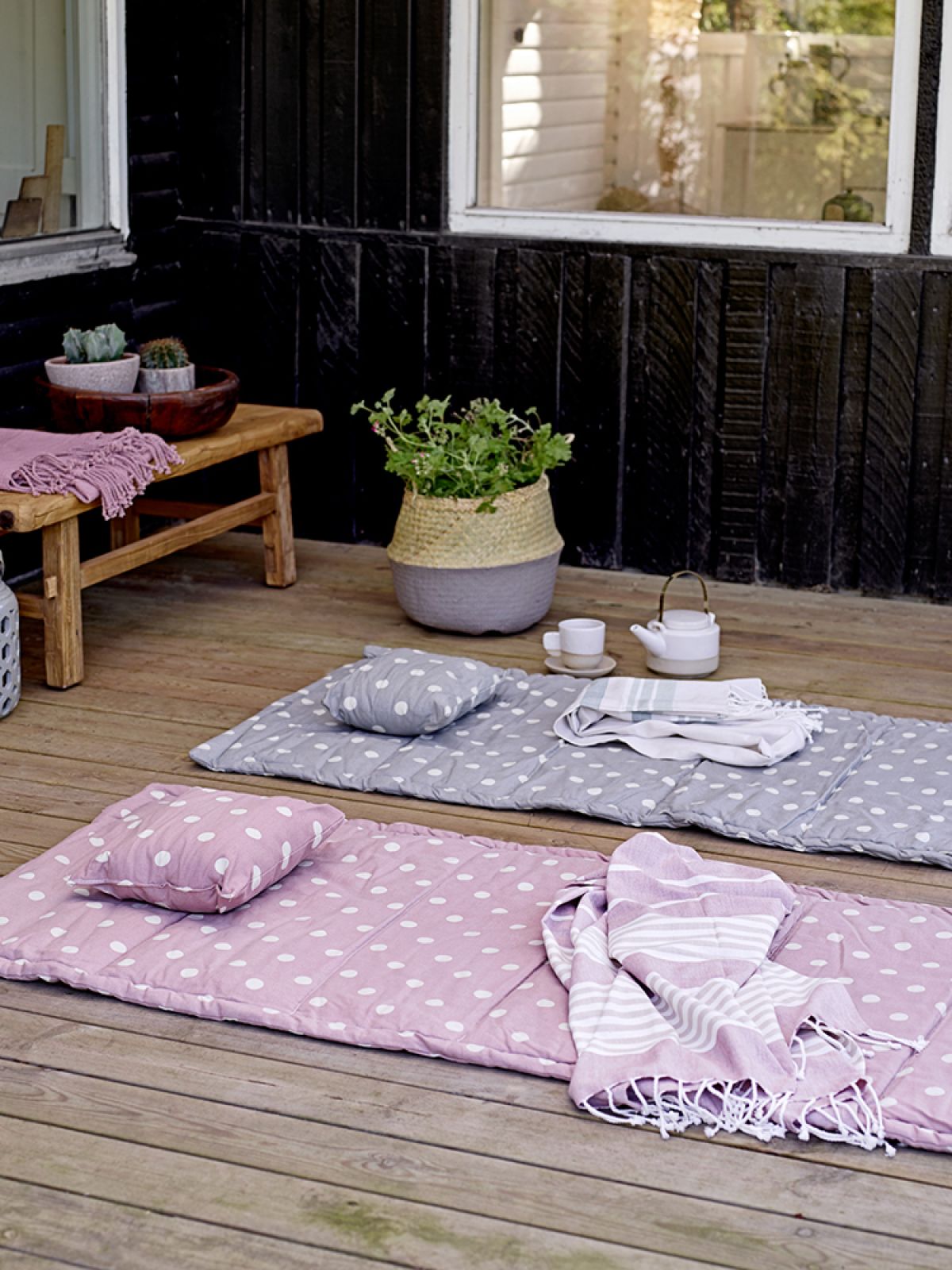 w tym: plecione hamaki od Madam Stoltz, które staną się ulubionym siedziskami wszystkich członków rodziny, czy kosze i pojemniki w stylu vintage od House Doctor, dzięki którym utrzymamy porządek w naszej letniskowej przestrzeni. Dla dzieci natomiast idealnym rozwiązaniem będą kolorowe namioty Bloomingville, z pewnością staną się dla nich zastępczymi pokojami na najbliższe kilka tygodni.