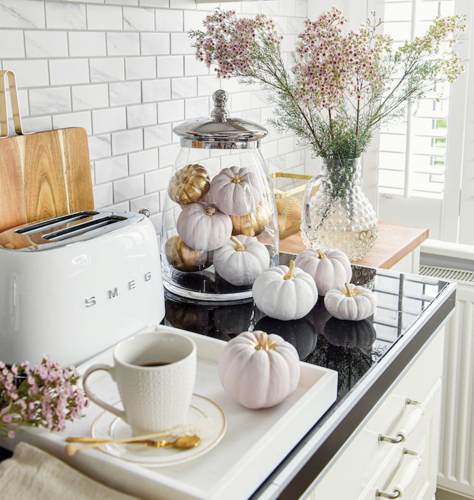 Podobnie w dodatkach do domu – rzeczy z połyskiem (lustra w srebrnych ramach) łączymy z matowymi (biskwitowa ceramika, gliniane naczynia). Nieodzowny element to rośliny: kwitnące gałązki, pęki traw, ogrodowe bukiety.