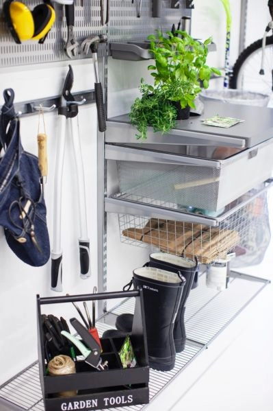 Jak to urządzić?Wybierając jedno z gotowych rozwiązań Elfa wykorzystasz maksymalnie przestrzeń swojego garażu i będziesz cieszyć się wygodnym korzystaniem z pomieszczeń gospodarczych.